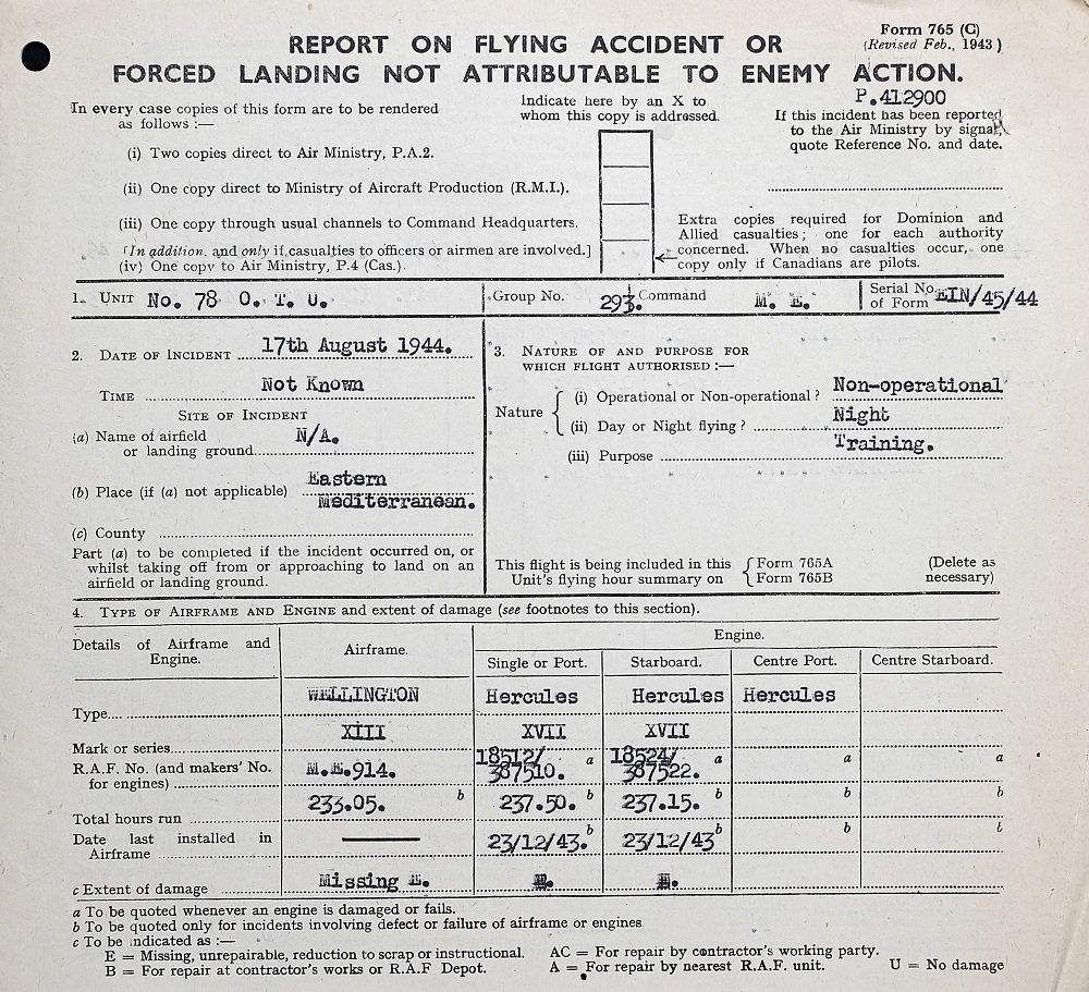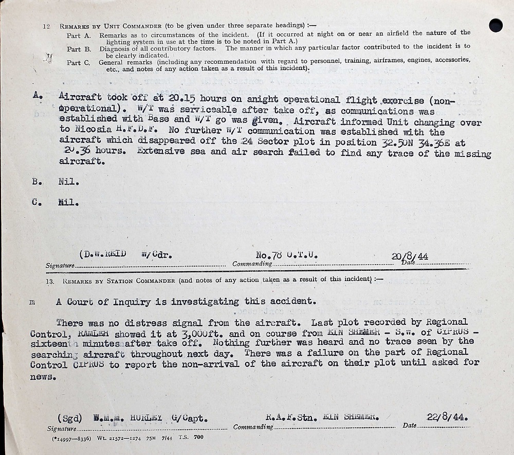 (6-7) Report on Flying Accident (8) Message to FO John Wilson's mother informing her of his death