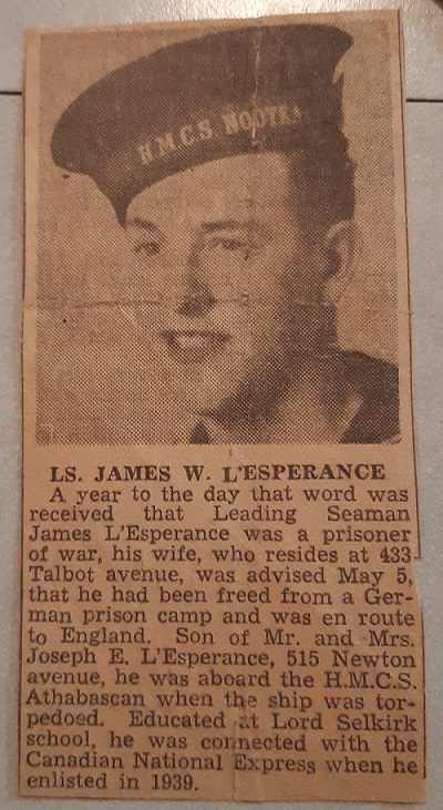 Twenty-seven year old Jim L'Esperance had good cause to fight for his own survival in the cold North Atlantic ocean. Waiting for his safe return home was his wife and two young children, one of whom he had yet to meet. His son was two years old and his baby daughter had been born after he went to sea.
