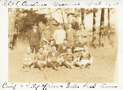 (1) Yeoman of Signals Walters on the Signal Light platform (possibly at the communications school) at HMCS Naden (2) RCN Canteen Ground April 1930 - Chief & Petty Officers Tuter (?sp) Park team Courtesy of Michael Noonan Click on the above photo to view larger images