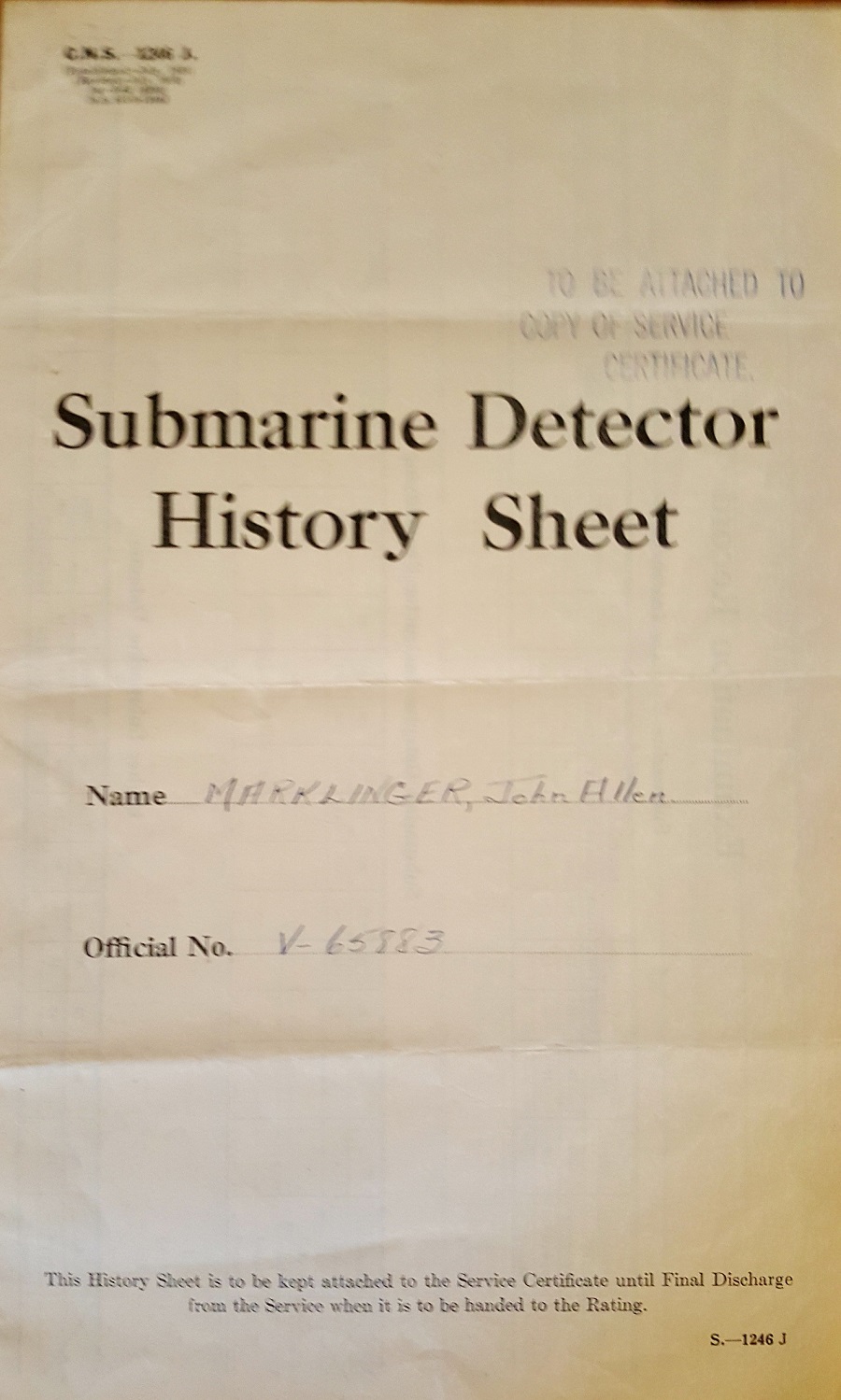 (6-9) Submarine Detector History Sheet