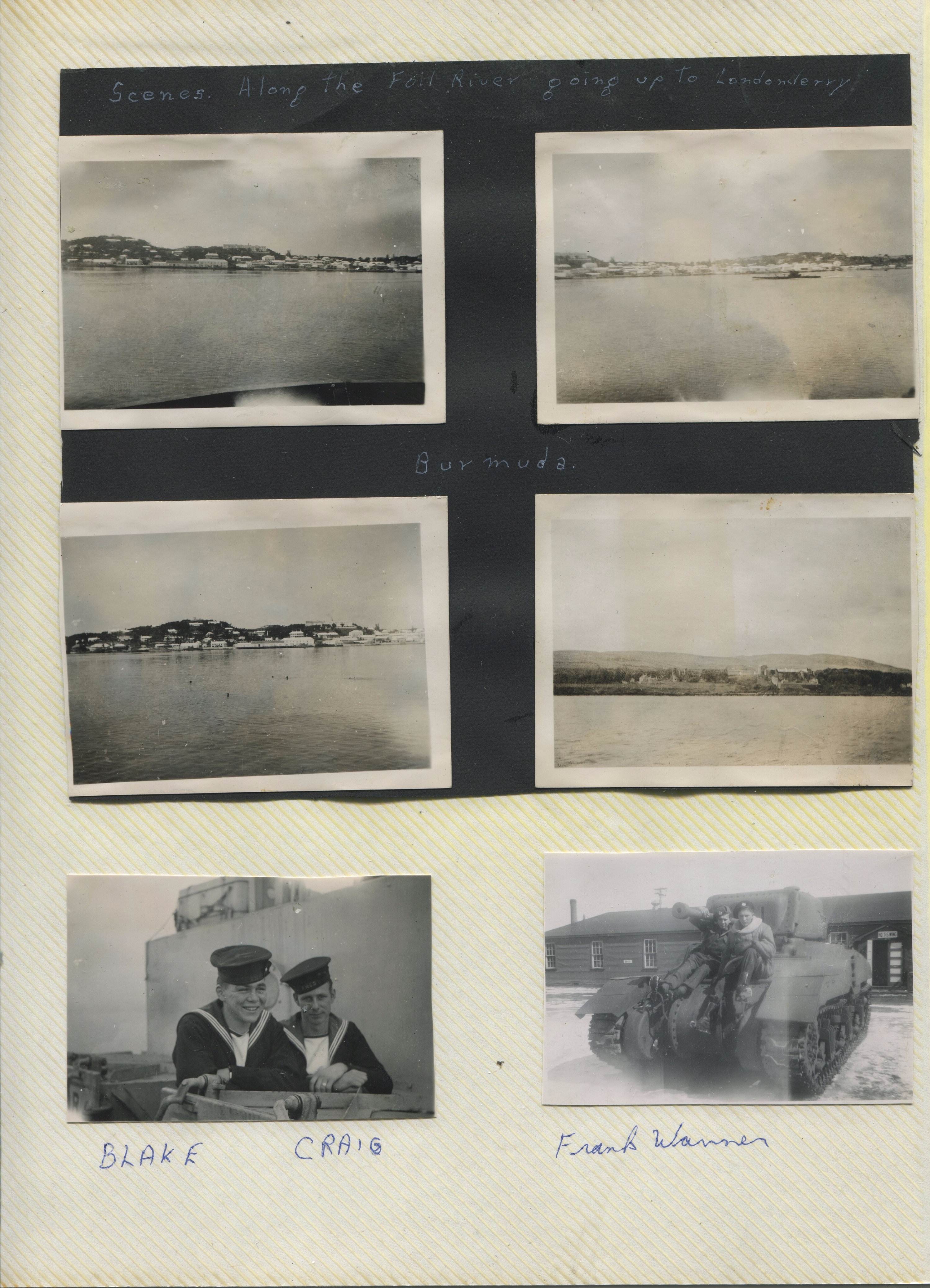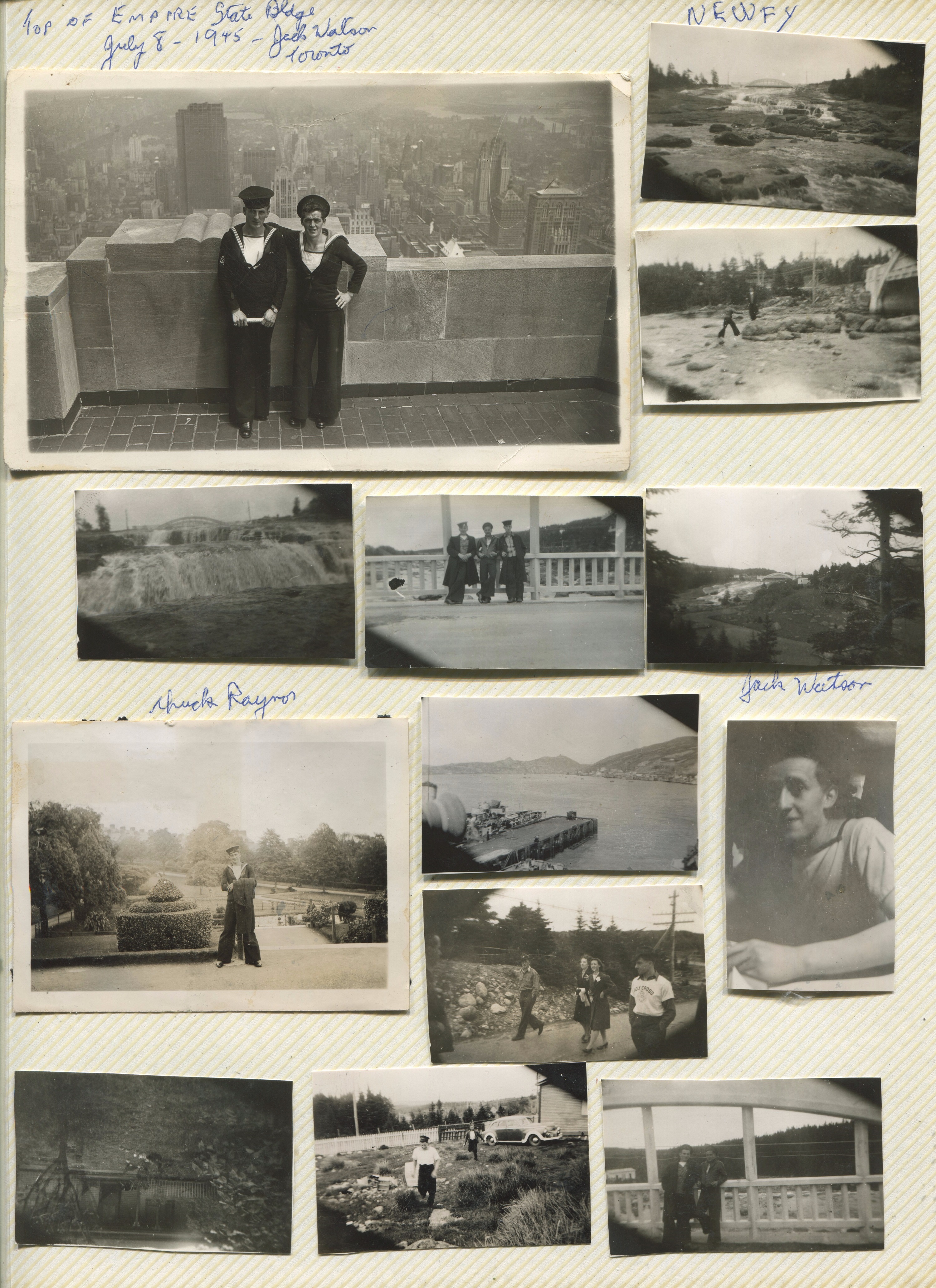 (JM01-JM03) Bermuda - Mar - Apr 1944 for work-ups. Allied sub in JM02 (JM04) White - location unknown (perhaps Bermuda) (J05) Top of Empire State Bldg, New York - 08 Jul 1945. John Marklinger (left) and Jack Watson (of Toronto) (JM06-JM07) Irish shoreline along the River Foyle