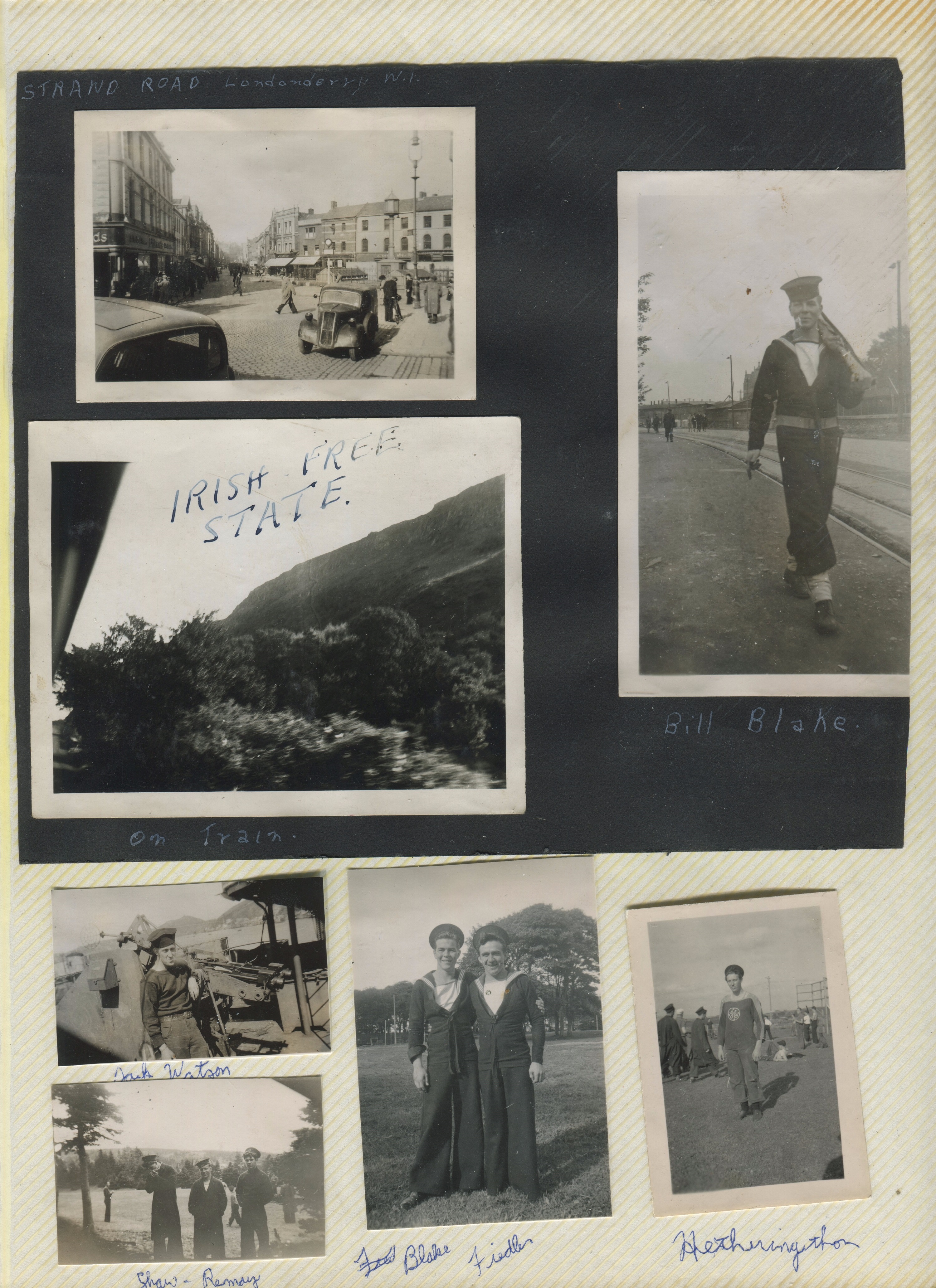 (JM08) Irish shoreline along the River Foyle (JM09) NEW GLASGOW sailors in the Irish Free State (JM10) Strand Road, Londonderry, Northern Ireland (JM11) Countryside in Irish Free State - photo taken while on a train (JM12-JM14) Port Rush, Northern Ireland