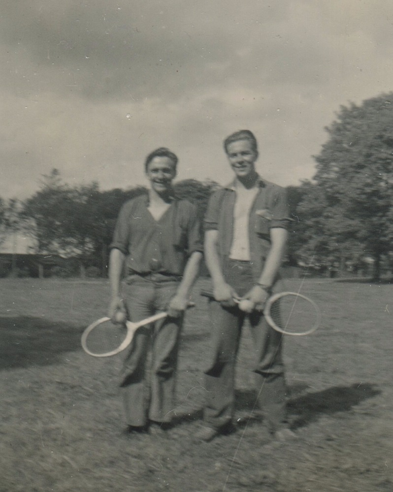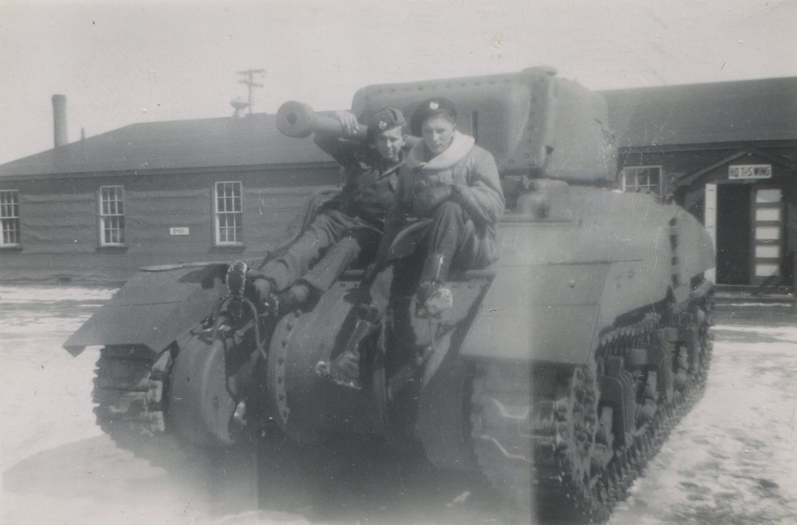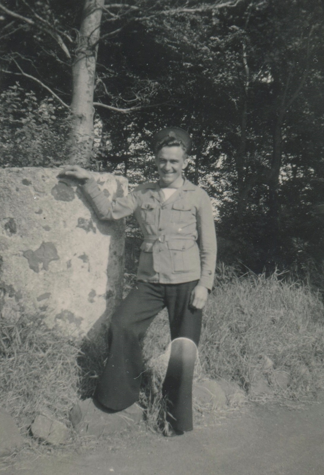 (JM22) Back: Watson, John Marklinger, Mackenzie - Front: Marshall, Douglas - Location unknown (JM23) Douglas, John Marklinger, Watson, Fiedler at the Northern Ireland border crossing (JM24) Back: Craig and Fiedler - Front: May and Macpherson (JM25) Back: Blake, John Marklinger, Craig, West, Bell - Front: Fiedler, Davidson (JM26) Bedwell standing jetty sentry - location unknown (JM27) Unidentified sailor in a mess deck on HMCS NEW GLASGOW (JM28) Newman