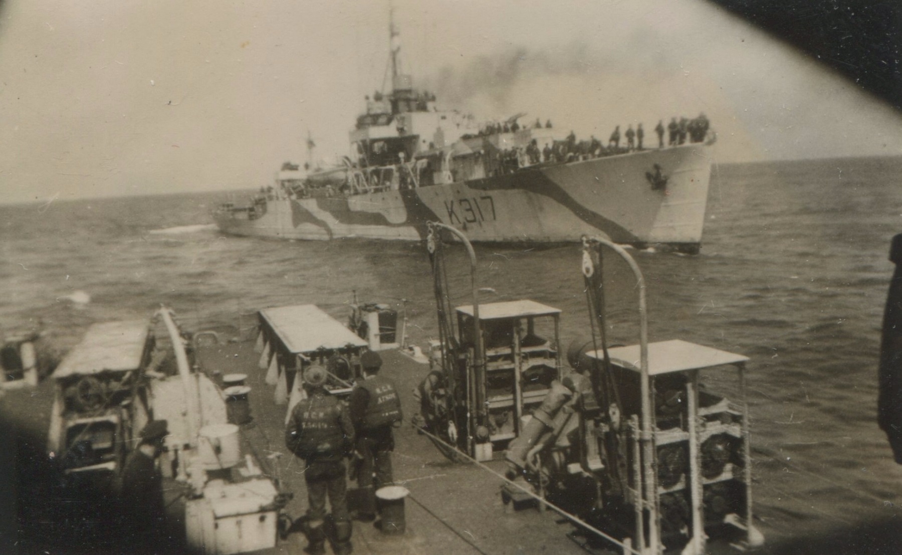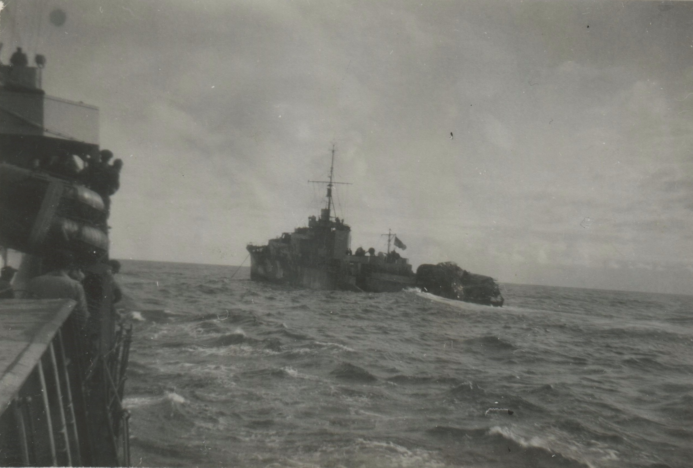 (JM50-JM52) HMCS CHEBOGUE K317 approaching HMCS NEW GLASGOW K320 - date unknown (JM53-JM54) HMCS CHEBOGUE k317 under tow after being torpedoed by U-1227 on 04 Oct 1944