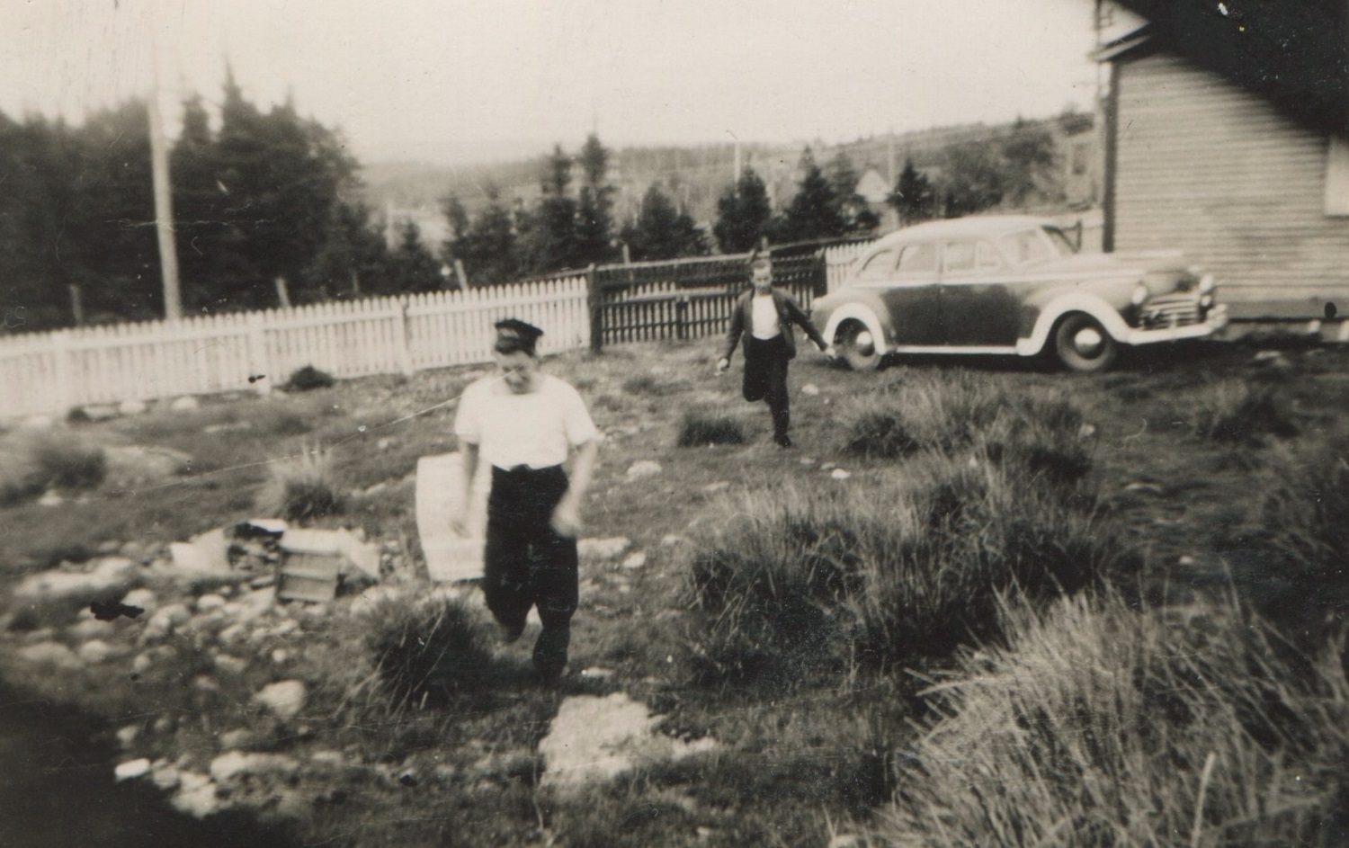 (JM76-JM89) HMCS NEW GLASGOW sailors ashore somewhere in Newfoundland