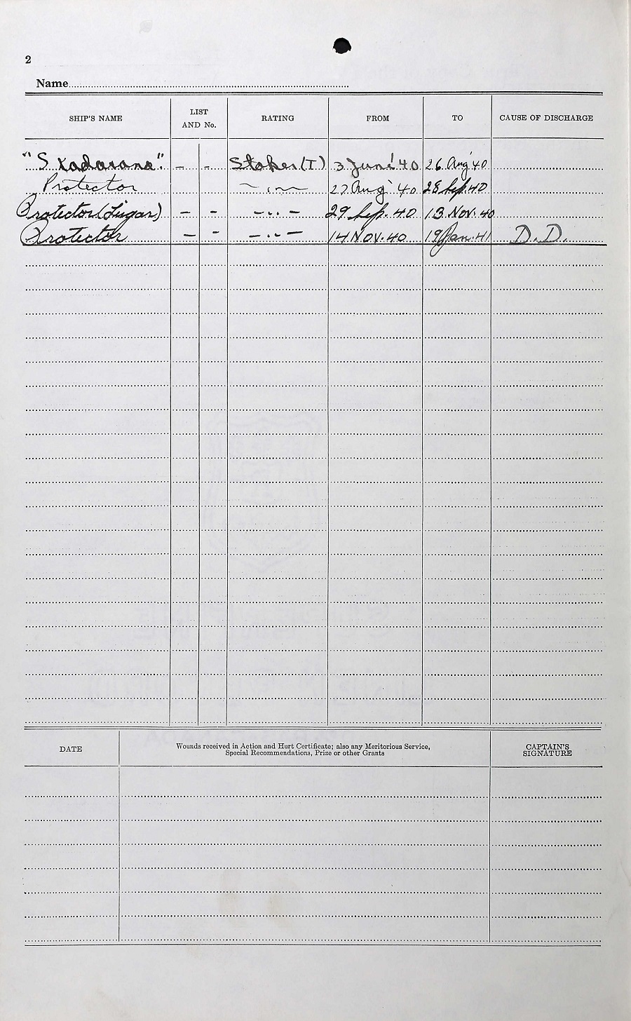 Ships served in: Tug LISGAR - Served in Lisgar 29 Sep 1940 - 13 Nov 1940 as a Stoker (T), RCNR