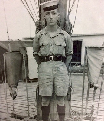 Roger Mirault, Telegraphist at HMCS ST HYACINTHE. Roger served as a Tel in HMCS HESPELER K489