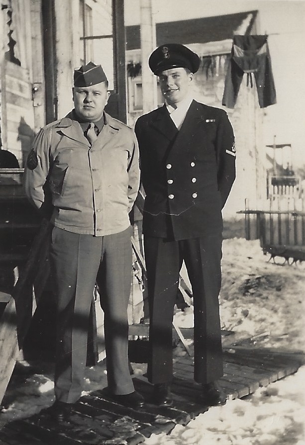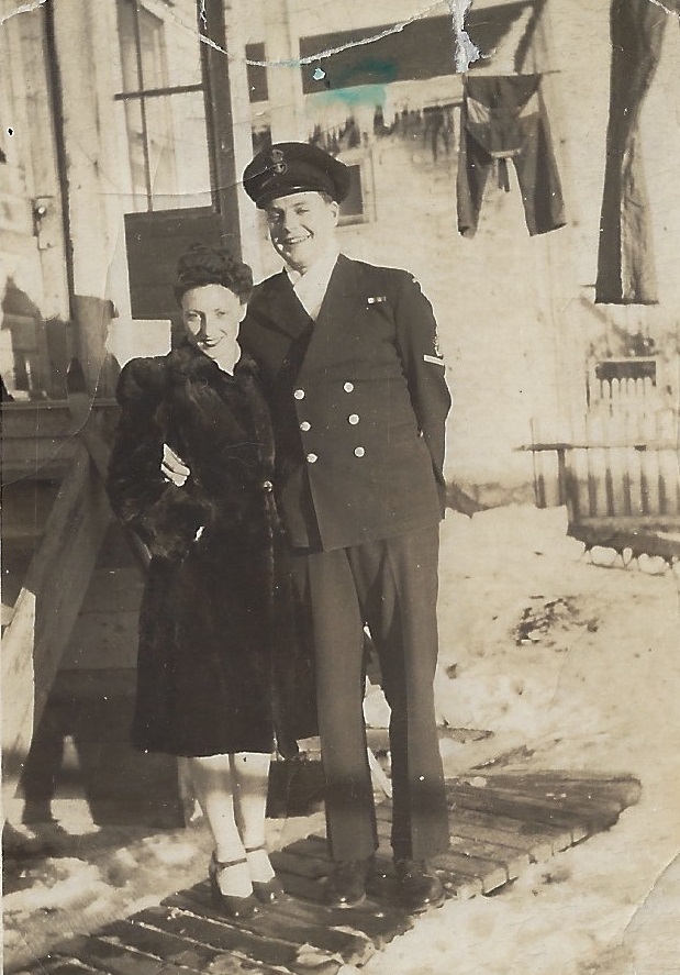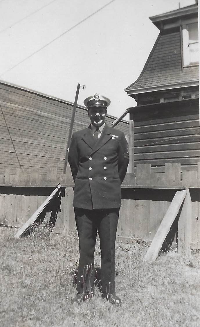 (1-2) PO Wynn (Square Rig PO) (3) PO Wynn (right) and unknown (4) Isabella (Isa) Waddelow and Bert Wynn. Bert and Isa were married on 16 Feb 1946 (5) PO Wynn 1949 (6) CPO Wynn on the foc's'le of HMCS ATHABASKAN. USS BREMERTON in the background on the right - 29 May 1952 (7) CPO Wynn, Kure, Japan, 11 May 1952
