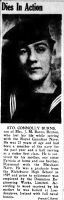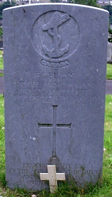 BURNS, Francis Connolly, Stoker 1c, V37387, RCNVR, died 01 Sep 1943, HMCS DRUMHELLER - Son of James Michael and Mary Gertrude Burns, of Rexton, Kent Co., New Brunswick, Canada.
