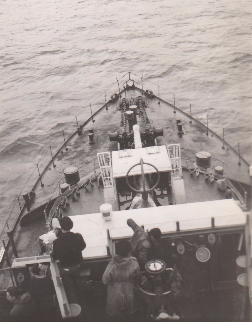 (GFW005) HMS PUNCHER (GFW006) Dutch sub at Hamilton, Bermuda. Fos's'le / gun deck of HMCS TIMMINS in the foreground (GFW007) HMCS TIMMINS alongside a Liberty ship at sea (note: possibly transferring stores by jackstay) (GFW008) Unknown sailor in the crows nest on HMCS TIMMINS (GFW009) Bridge, Gun Deck and Fo'c's'le of HMCS TIMMINS - taken from the crows nest