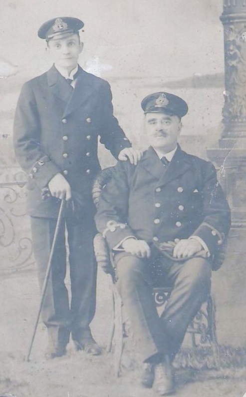 STEVENS, Frank D. (Sr.) - Frank Stevens, son of William Benjamin and Frances Amelia Stevens, was a heavy tugboat captain. He joined the RNCVR with his son in early 1917 and was warranted as a 'Skipper'. He was assigned to the HMCS Niobe for patrols, and took command of an armed patrol vessel . He was later seconded to the Ministry of Shipping out of Montreal, and returned to the RNCVR at the end of 1918. He returned to his work on tugs with Canadian Pacific, on 27 Jun 1925 his tug, the Ocean King was struck amidships by the passenger liner Marloch in Quebec City - all nine aboard the tug died.
