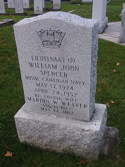 SPENCER, William John Lt (P), O-69210, RCN, died - 24 Apr 1952, HMCS SHEARWATER, 880 Anti-Submarine Squadron - Son of Watson and Ethel Spencer; husband of Marion Spencer; father of Christopher and Phillip Spencer; brother of Barry Spencer.
