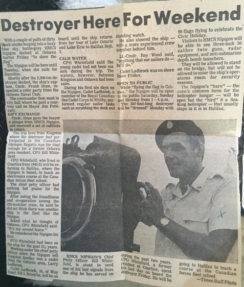 Article from NIPIGON'S Great Lakes Deployment in 1978 Courtesy of Ken Almon