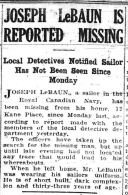 Joseph LeBaun was reported missing from his home in Halifax since Monday, 01 Aug 1925. He was 33 years of age when he went missing.