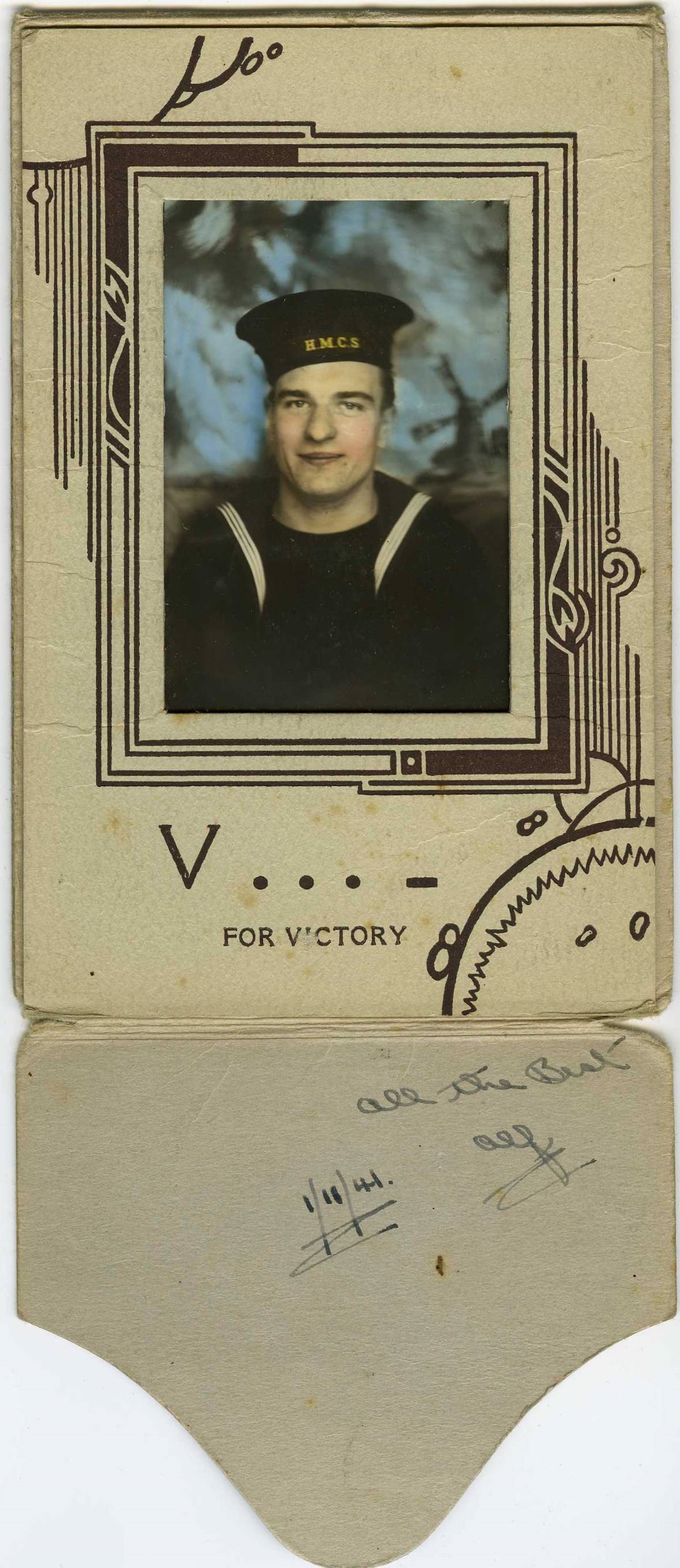 (AJ05) Family that Alfred Johnson stayed with in St John's, Newfoundland - the O'Neils (AJ06) Autographs from the survivors of U-501 that were rescued by HMCS CHAMBLY (AJ07) Message on the awarding of the DSM to LS Johnson (AJ08) HMCS CHAMBLY match booklet