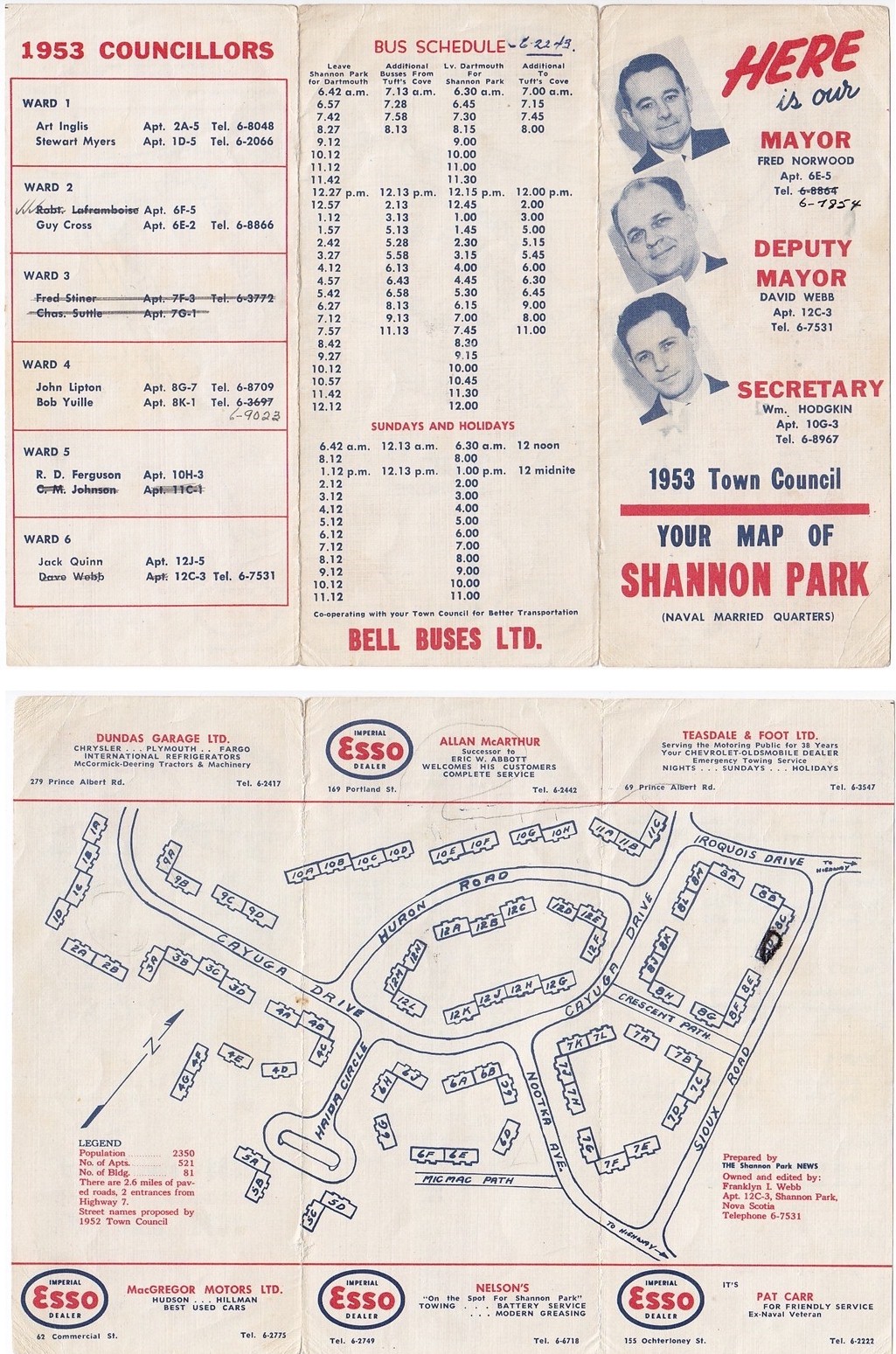 (1WPH00) Family photo taken when Phil Hodgkin was 17 1/2 years old and had just enlisted in the Navy. L-R: Phil's mother, William 17 1/2 yrs. old; Phil's Aunt - who was actually a year younger than him, and his half-brother who was 4 years younger. Photo taken at the farm Marine Drive, Burnaby BC. (WPH002) Phil and Joan 1952 - Cayuga return Dance at Crystal Gardens, Victoria (WPH003) Bus schedule for Shannon Park - which also shows the Mayor, Deputy Mayor and Secretary - William Hodgkin (WPH004) Portrait of Chief Hodgkin when PMC of the Chiefs and Petty Officers Mess at HMCS Hochelaga (WPH005) Record of William Hodgkin's drafts