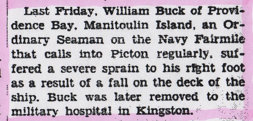 William Buck was injured on 19 Aug 1949 while serving in ML Q121.