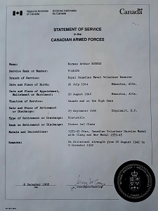 Ships served in: HMCS NONSUCH - Enlisted 20 Aug 1942 HMCS NADEN - Demobilized 29 Sep 1945