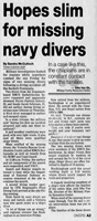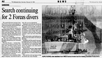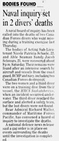 (VS01) Article from the Vancouver Sun 19 Feb 1994 on missing divers A/SLt Shiele and AB Schreurs (VS02) Article from the Vancouver Sun 21 Feb 1994 on Naval Inquiry into the deaths of A/SLt Shiele and AB Schreurs Researched by Steve Hutchings