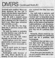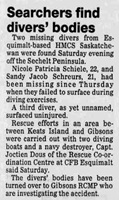 (TC01-TC02) Article from the Victoria Times Colonist 19 Feb 1994 on missing divers A/SLt Shiele and AB Schreurs (TC03) Article on the finding of the bodies of A/SLt Shiele and AB Schreurs Researched by Steve Hutchings