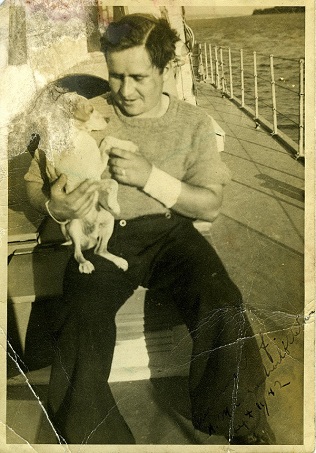 Months later we were tied up in Halifax, about 3 ships out from the jetty.  I was working on the quarter deck when one of the fellows hollered for us to take a look at what was coming down the jetty. It was Screech. the chap who spotted Screech made his was over the ships, picked up the dog, brought him onboard, and turned him over to Garland. No one ever complained about the dog again. They said, if Screech could find his way from St. John's, Newfoundland to Halifax, Nova Scotia during the war with all the ships both merchant and navy, it was meant to be.