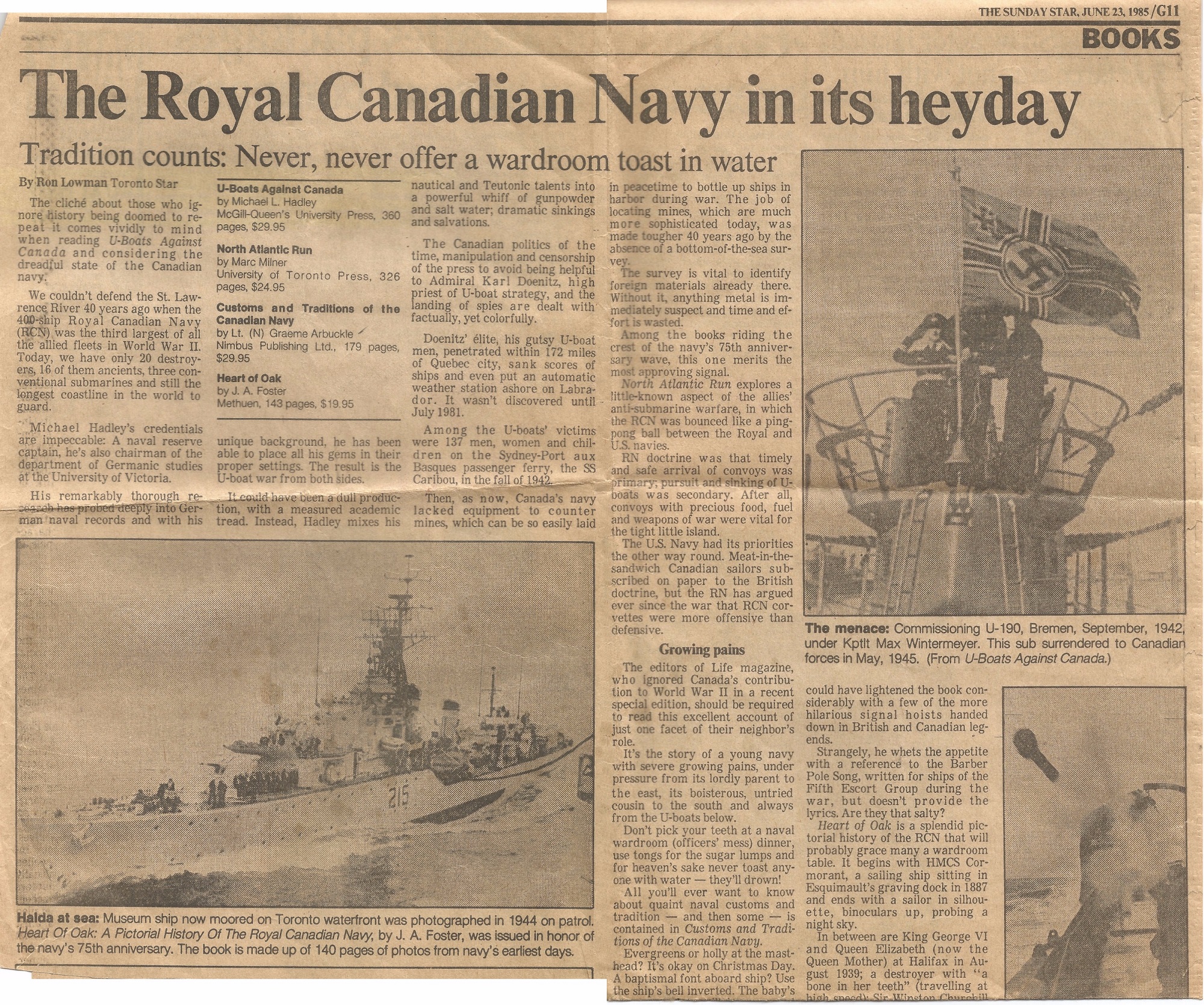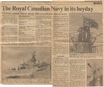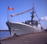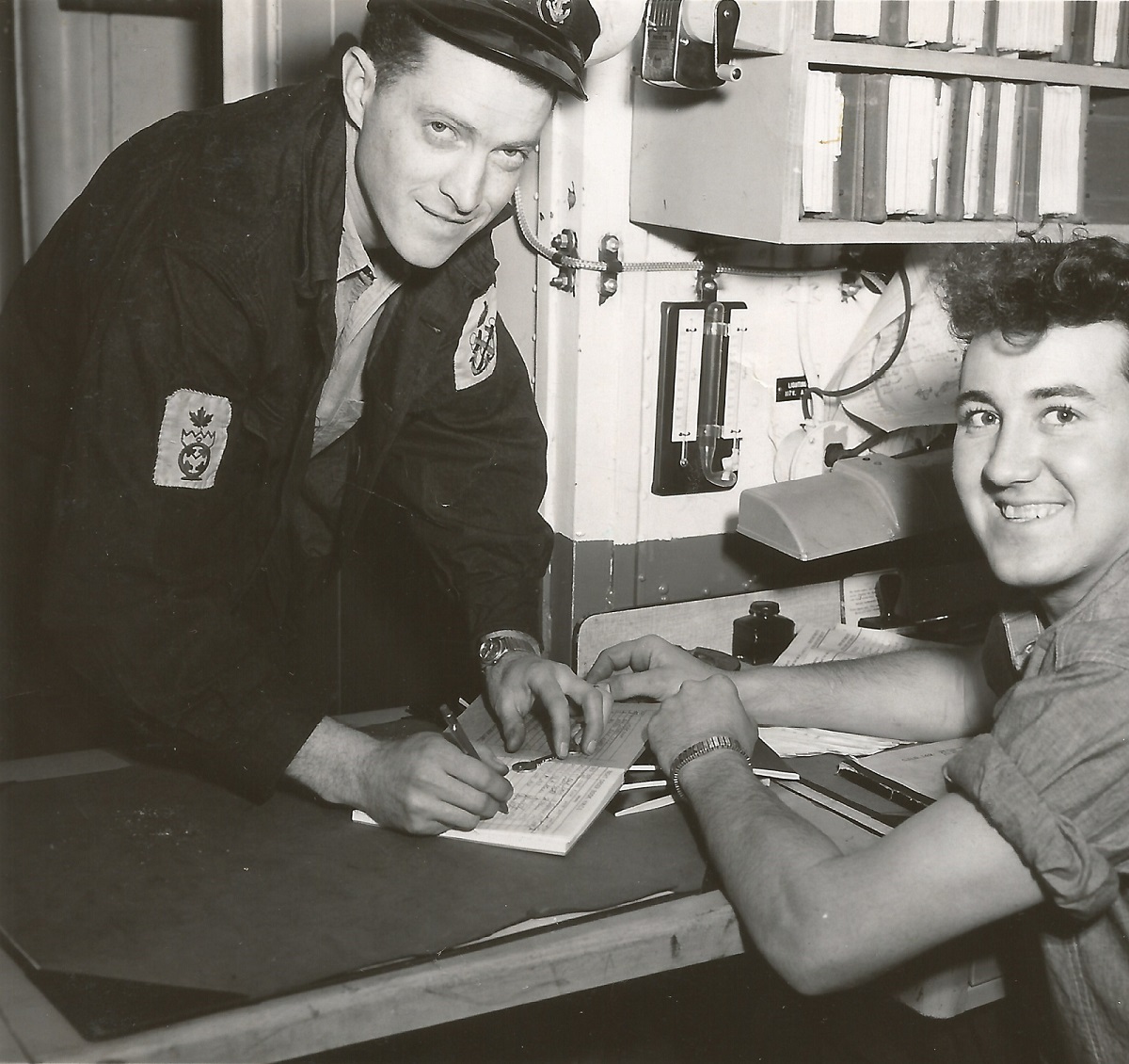 Ships served in: HMCS YORK - Enlisted 12 Jul 1946 HMCS UGANDA - Served in Uganda 16 Nov 1946 - 28 Jan 1947 as an OS, RCN HMCS IROQUOIS - Served in Iroquois 10 Feb 1947 - 17 Jun 1948 as an OS and AB, RCN. Rated AB 12 Oct 1947 HMCS MAGNIFICENT - Served in Magnificent 30 Aug 1948 - 04 Jan 1950 as an AB, AB.EM1 and LS.EM1, RCN. Rated ABEM1 27 Aug 1948. Rated LS.EM1 01 May 1949 HMCS MAGNIFICENT - Served in Magnificent 30 Apr 1950 - 19 Apr 1953 as an LS.EM2, LS.ET3 and P2ET3, RCN. Rated LS.ET3 06 Apr 1951. Rated P2ET3 15 Jun 1951 HMCS LABRADOR - Served in Labrador 20 Jul 1954 - 06 May 1956 as a P2ET4 and P1ET4, RCN. Rated P1ET4 15 Jun 1954 HMCS ALGONQUIN - Served in Algonquin 23 Jun 1958 - 14 Jan 1959 as a P1ET4, RCN HMCS ATHABASKAN - Served in Athabaskan 16 Feb 1959 - 31 Jul 1959 as a P1ET4, RCN HMCS CAPE SCOTT - Served in Cape Scott 19 Sep 1960 - 11 Jul 1962 as a P1ET4 and C2ET4, RCN. Rated C2ET4 01 Dec 1960 HMCS RESTIGOUCHE - Served in Restigouche 12 May 1965 - 14 Jan 1968 as a C2ET and C1ET, RCN. Rated C1ET 01 Apr 1967.