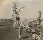 (AM19) Fo'c's'le of HMCS IROQUOIS - photo taken from by the bull ring (AM19a) HMCS MICMAC under repair after being rammed by SS Yarmouth County on 16 Jul 1947. Photo taken from HMCS IROQUOIS (AM20) Divisions on HMCS IROQUOIS