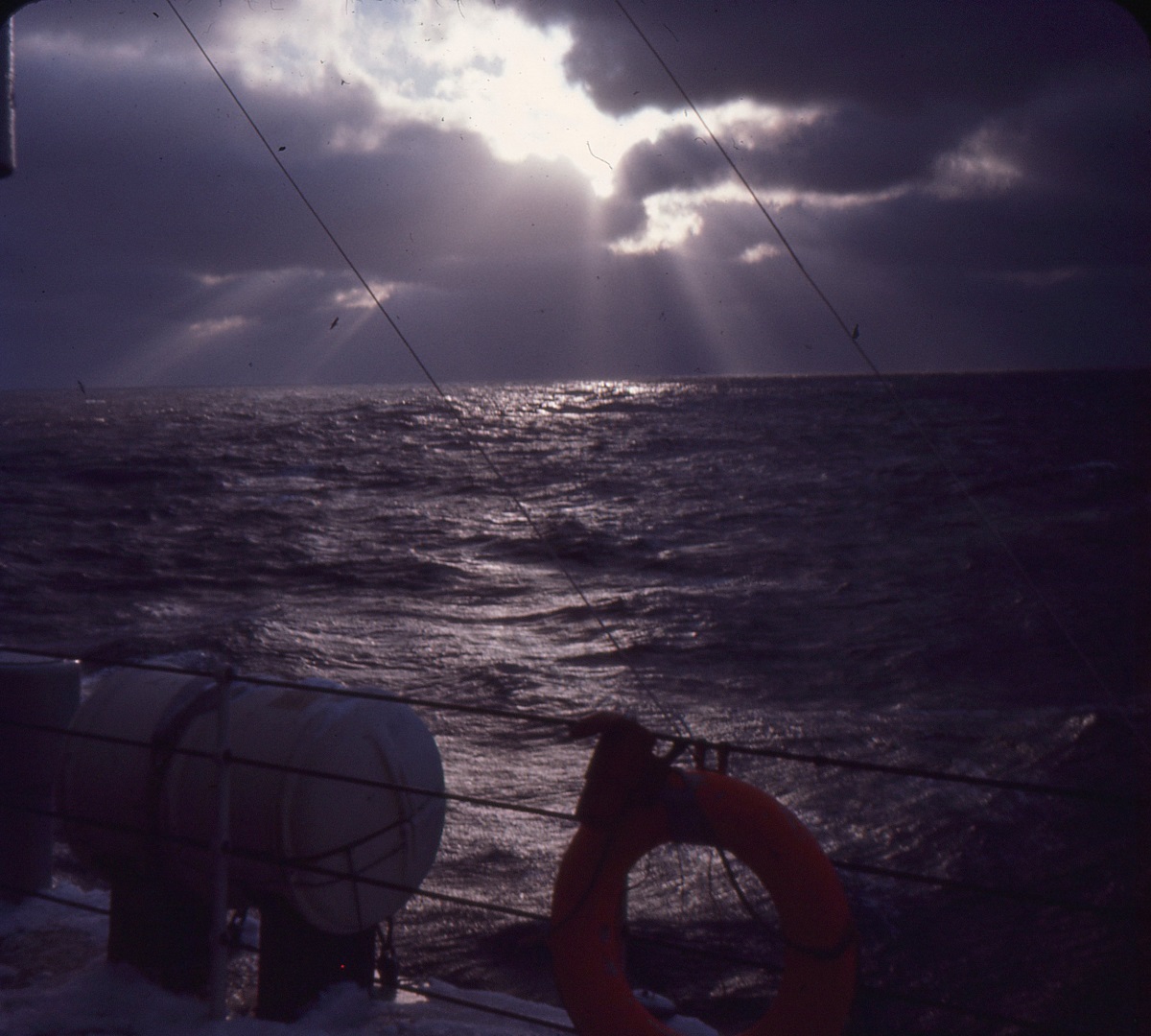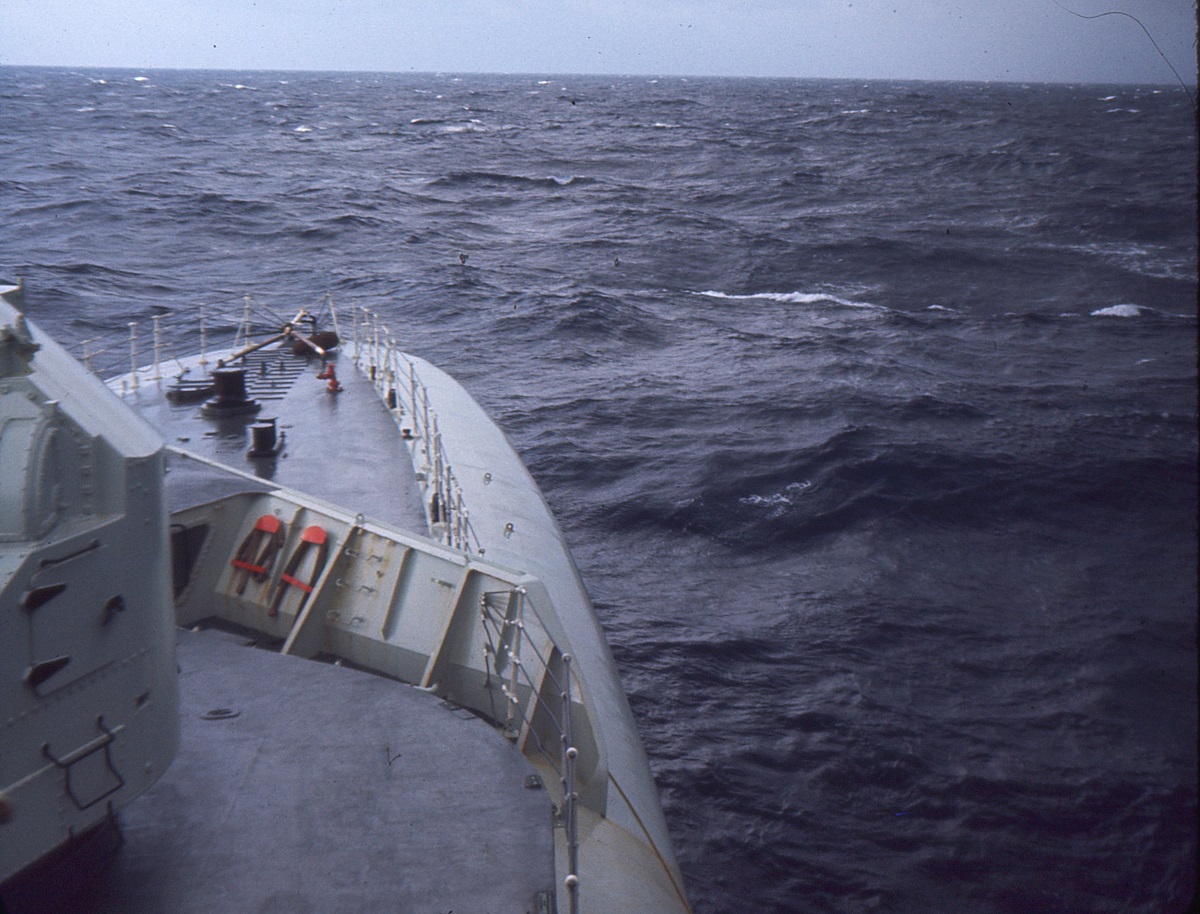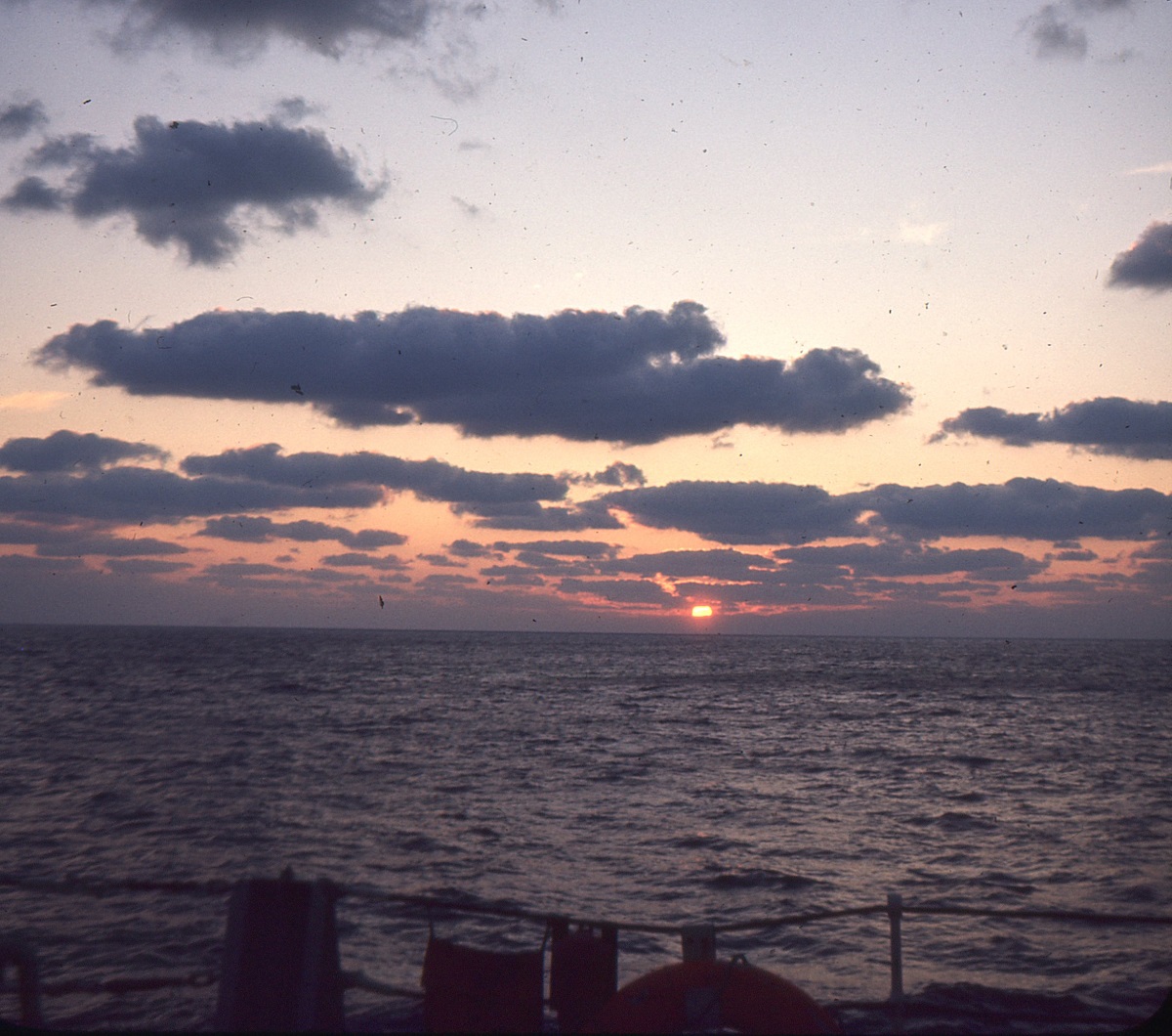 (AM150) Unknown location (AM151) Choppy seas (AM152) HMCS RESTIGOUCHE during river transit - Dunc Bishop on right (AM153-AM154) Sunset at sea