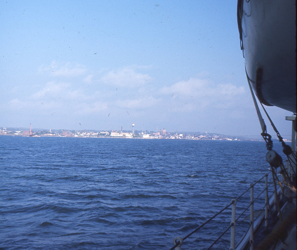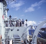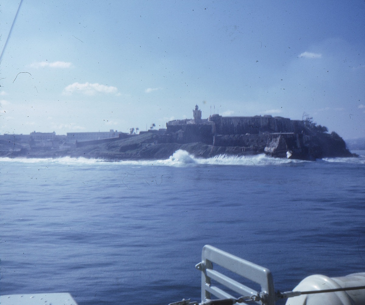 (AM133-AM135) HMCS RESTIGOUCHE departing Puerto Rico - Castillo San Felipe del Morro up on the starboard side (AM136-AM137) Unidentified cruise ship passing HMCS RESTIGOUCHE as she departs Puerto Rico. Cruise ship seen in the distance of photo "AM134"