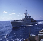 (AM138) HMCS ANNAPOLIS 265 approaching HMCS RESTIGOUCHE to conduct jackstay (AM139) Jackstay between HMCS RESTIGOUCHE and HMCS ANNAPOLIS - you can see the jackstay lines between the ships. (AM140-AM141) Jackstay complete - HMCS ANNAPOLIS picks up speed and moves off (AM142) HMCS ANNAPOLIS 265 (AM143) Bermuda Island