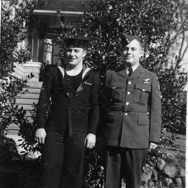 Able Seaman David H. Chapman (left) with his brother outside the family home in West Vancouver Courtesy of Andrea Chapman