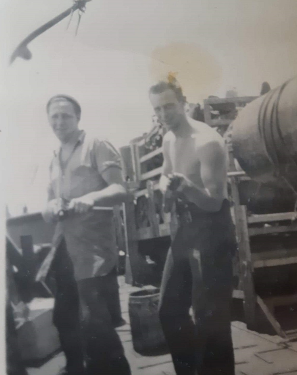 Prior to joining Glen had never cooked. Once time on ship, he was cooking dehydrated peas he thought it did not look like enough peas so he put more in the vat and soon it was like Niagara falls of peas overflowing from the vat. To get rid of them, he took some buckets and threw the peas out the galley's port hole ... right into the captain's face.