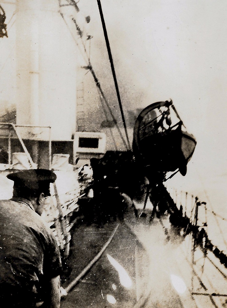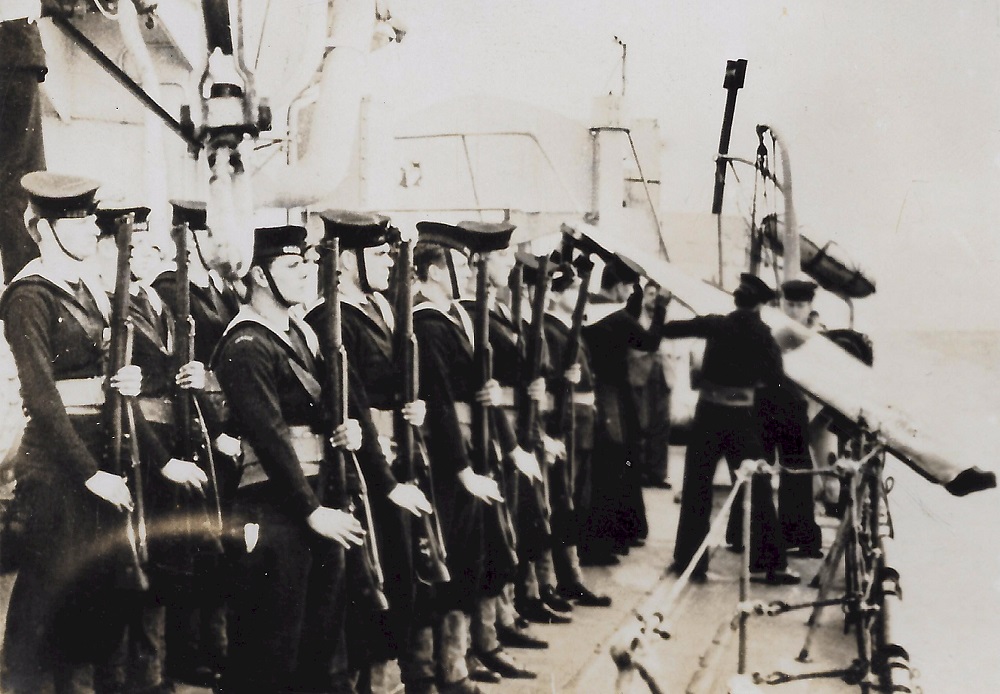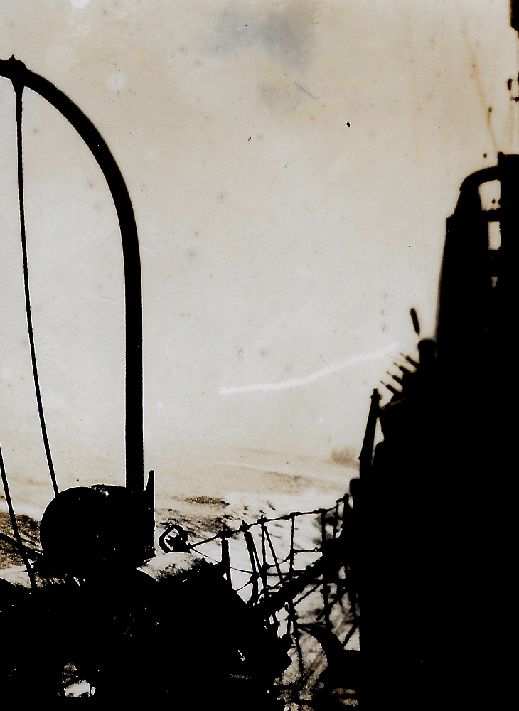 Note: photo WM73: William described the burial at sea of the mascot as off the coast of Laine - however no maps show any such coastal area. From William's daughter: It may possibly be Larne, which is just north of Belfast along the coast. He sent 90% of his photos to his parents, who were also originally from Belfast, so he may have been referring to an area they were familiar with. Now if the ship came out of Londonderry and went up to Tobermory it may have been in the waters north of Larne. Other than that, I can only guess he may have used a local term to describe a coastal area.