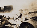 (WM12-WM14) U-210 just before being rammed by HMCS ASSINIBOINE (WM15) Crew of HMCS ASSINIBOINE fighting a fire on their boat deck caused by shells from U-210 (WM16) HMCS ASSINIBOINE'S boat crew rescuing survivors of U-210 (WM17) Burial at sea of OS Kenneth Watson, killed in action during the battle against U-210 (WM18) Lt Subbs on the bridge of HMCS ASSINIBOINE - battle damage can be seen on the face of the bridge from U-210's gunfire