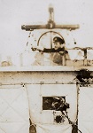 (WM31) "Joliette, taken from Eastview, never thought I'd be on her in them days." (WM32-35) "A 50 foot setting on that charge. They go off pretty close to you." HMCS EASTVIEW dropping a depth charge from the after rails (WM36) Guns being cleared on HMCS EASTVIEW. Captain wearing dark glasses