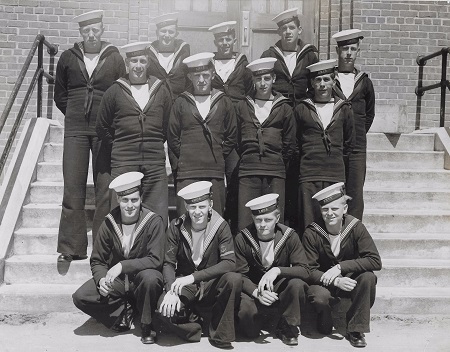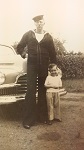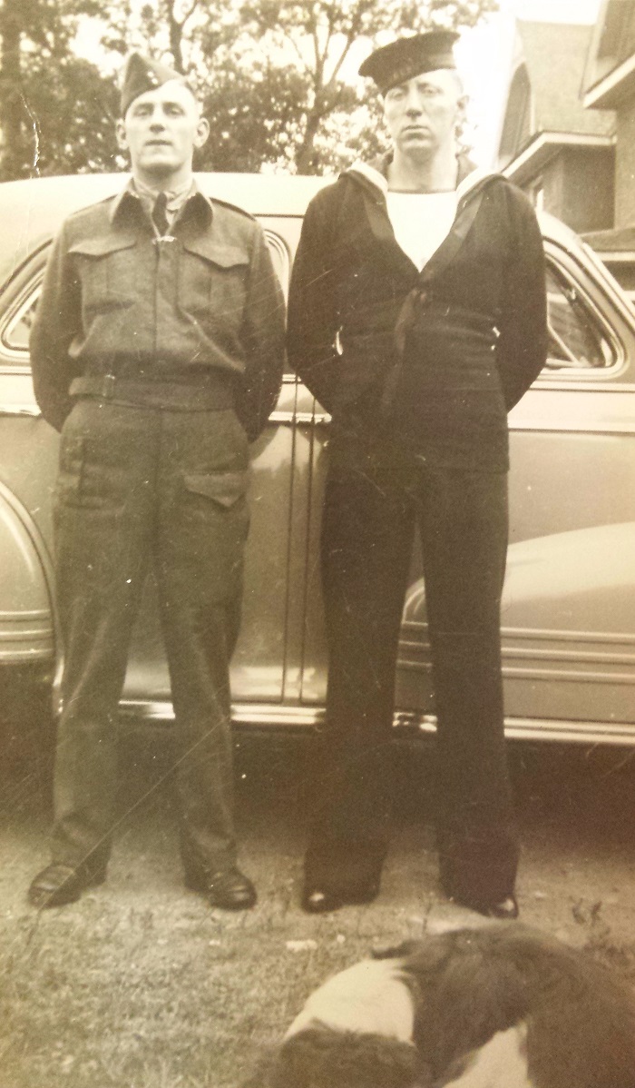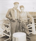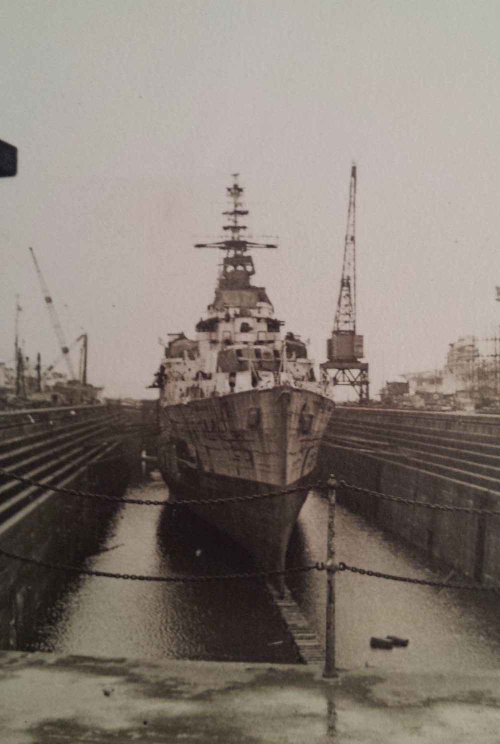 (WM09) Unknown frigate that William McComb was serving in. "Spring of '44. leaving the Dartmouth slips. That’s where we were when Mr. Ryan visited us." (WM10) Unknown cruiser in drydock in Belfast, Northern Ireland (WM11)William McComb (left) and unidentified shipmate - William served in several ships and it is not known which ship this photo was taken on.