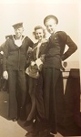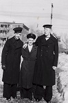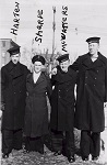 (WM19) Coming into harbour at Bermuda - unknown corvette astern (WM20) "Lt. Commander Kirkpatrick from Windsor. Our Captain HMCS EASTVIEW at Bermuda" (WM21) "Fellow on right is Lt. Woodcock our Navigator. Good looking, eh?" - Note: Lt Woodcock was the Navigator of HMCS EASTVIEW (WM22) "Cal sitting down" (WM23) Shark with Gunner's Mate PO Winters, RCN and L/Sea Gauthier (WM24) Sailors posing with a shark that was caught. 2nd to left from shark is McComb