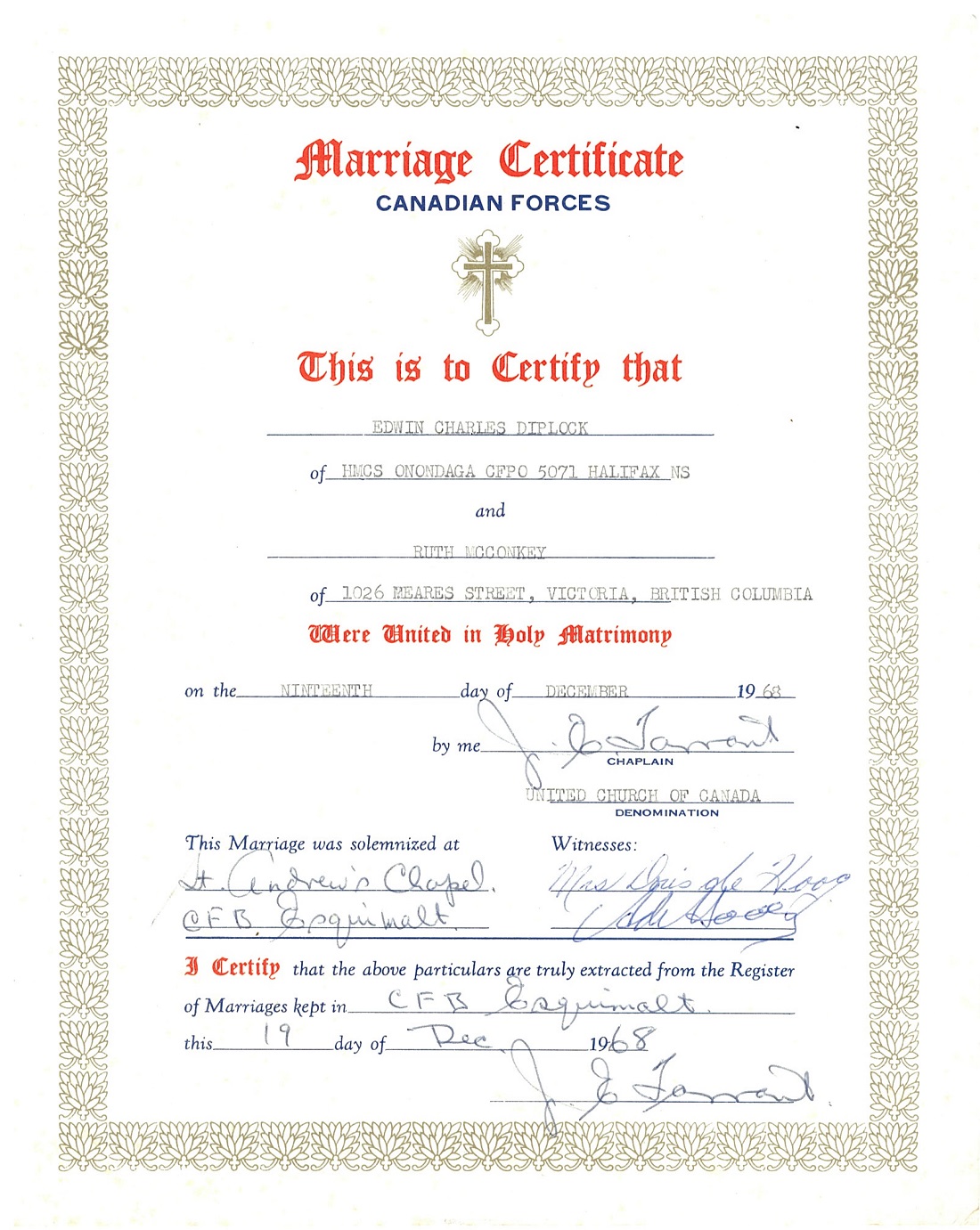(1) Marriage certificate for Edwin Diplock and Ruth McConkey (2) Last Tot certificate for Edwin Diplock (3) Headstone for Edwin Diplock