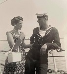 (GD01) Gregory Deck posing with local child while ashore from HMCS QUEBEC. Location unknown (GD02) Gregory Deck (left) ashore with shipmates from HMCS QUEBEC. Location unknown (GD03) Gregory Deck has the attention of this guest to his ship