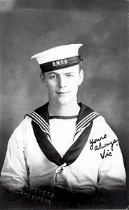 Victor Curry served in the RCN from 1939 to 1965, initially as a Telegraphist before accepting his commission. He was involved in the deployment of the LORAN installations; working at Barrington, NS, Whitehead, NS, and then Churchill, MB. After the war he accepted his commission. As an officer, he earned his Watch Keeping Certificate; served as a Div O; Flag Officer's staff; Training Officer and finally Area Officer Sea Cadets.