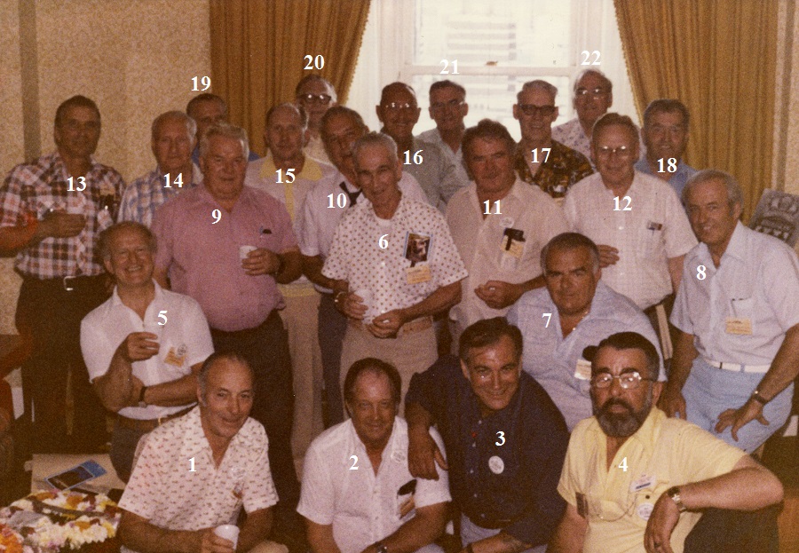 (WT63) HMCS ATHABASKAN G07 Reunion (1) Don Newman (2) Wilf Henrickson (3) Sam Pine (4) 'Doc" Savage (5) John Fairchild (6) 'Buck' Parsons (7) Andre Audet (8) Herm Sulkers (9) Jess McCabe (10) Roy Westaway (11) Jim Carr (12) 'Whitey' Eastwood (13) Harry Liznick (14) Paul Woolley (15) Ernie Takalo (16) Dave Frame (17) Hector Cooper 918) Digby Deal ?sp (19) Ray Beach (20) Alex McKinnon (21) George Howard (22) Bert Nelson Missing: Jim Lesperance, George Quigley