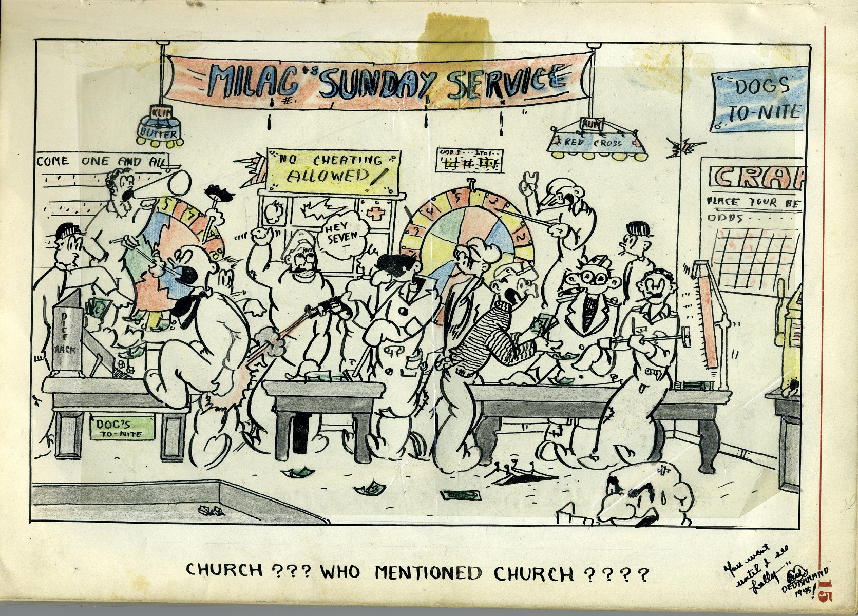( WT41) the POWs of Barrack ‘V’- Willie is back row, fourth from the left and not smiling. The middle photo appears to be a machine for boiling water. The bottom photo looks like a prisoner’s drama skit. (WT42) Marlag und Milag Nord POW camp