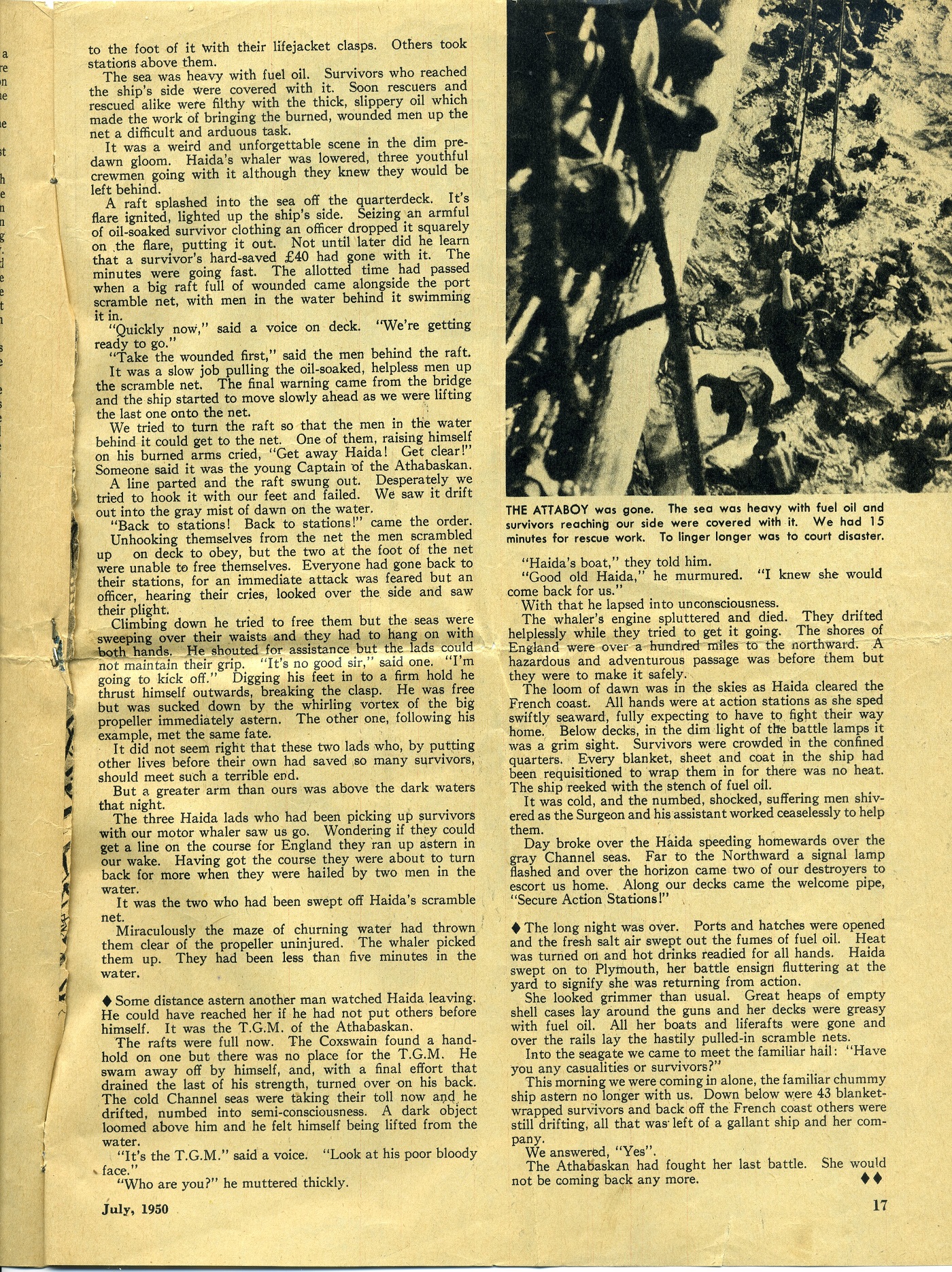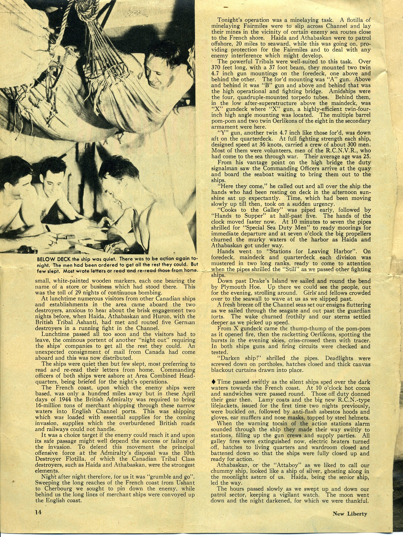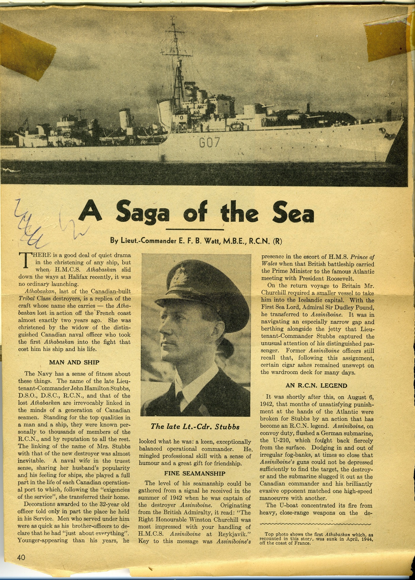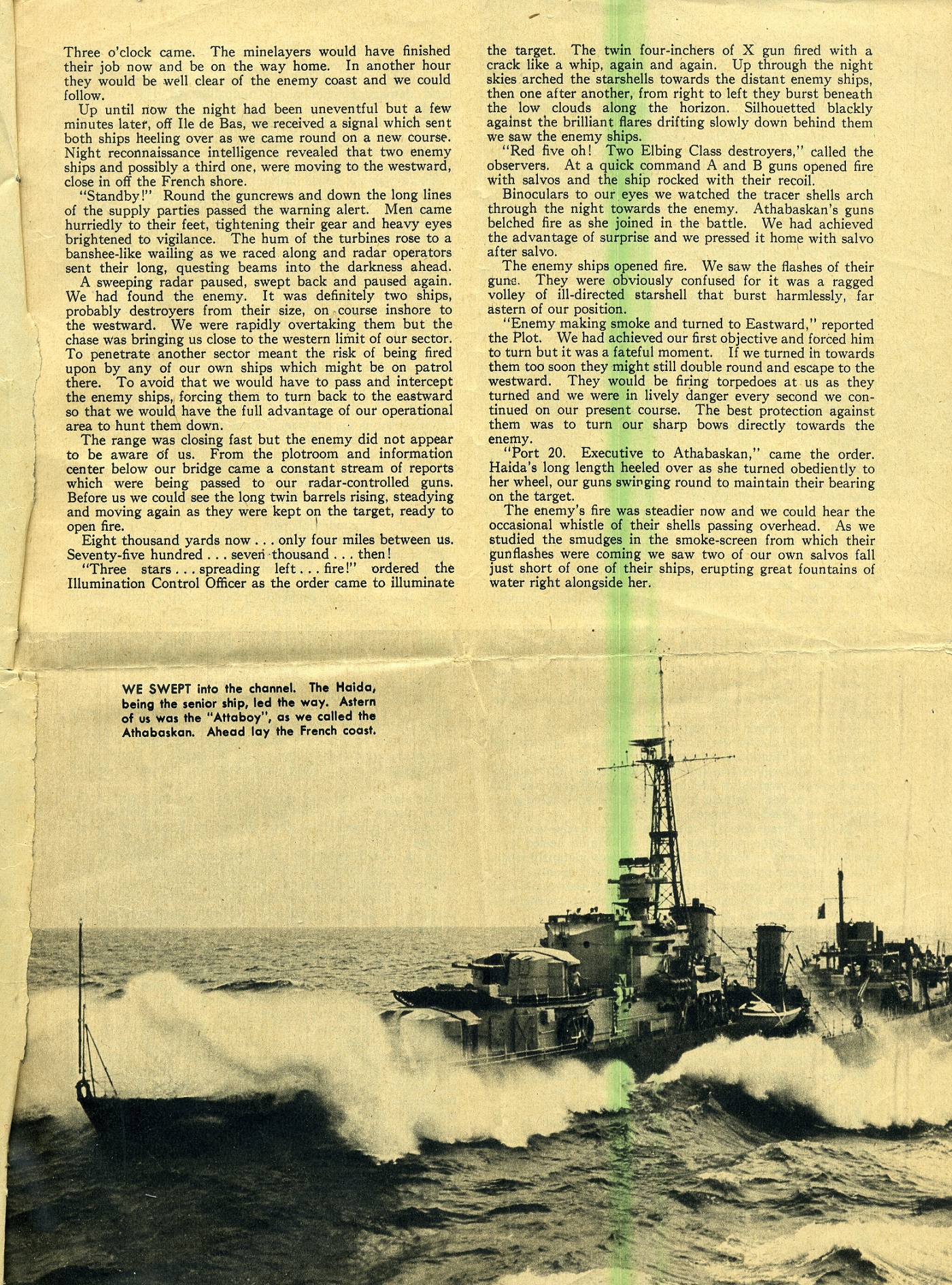 (WY27-WT31) Post WW2 magazine article on the loss of HMCS ATHABASKAN G07