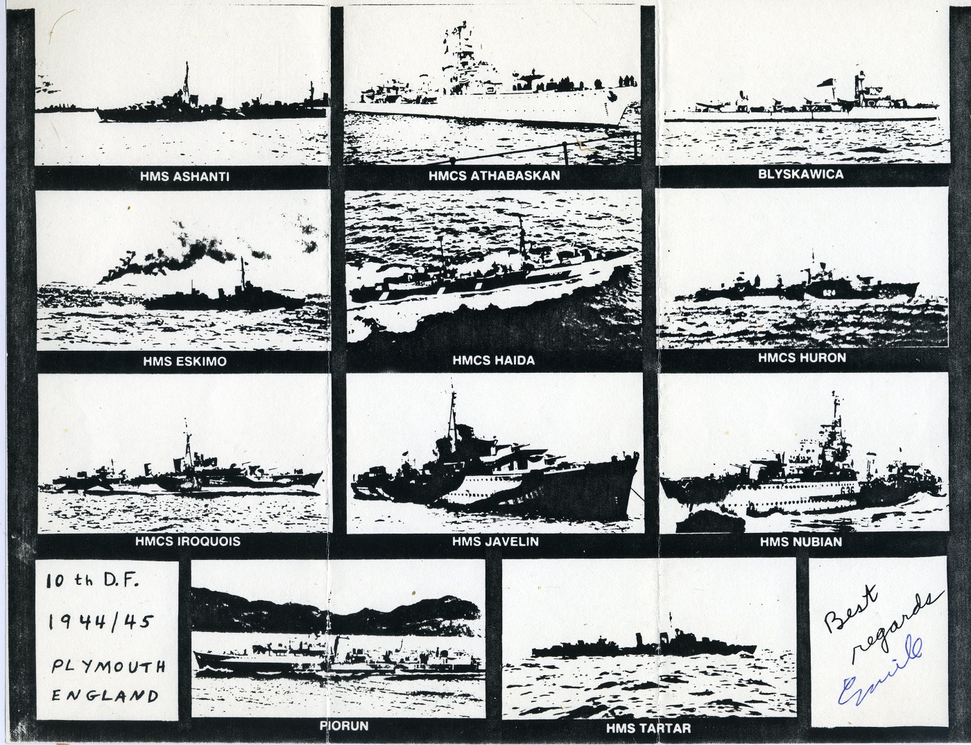 (WT51) The various ships of the 10th Division Force with best regards from Emile Beaudoin, a fellow ATHABASKAN PO