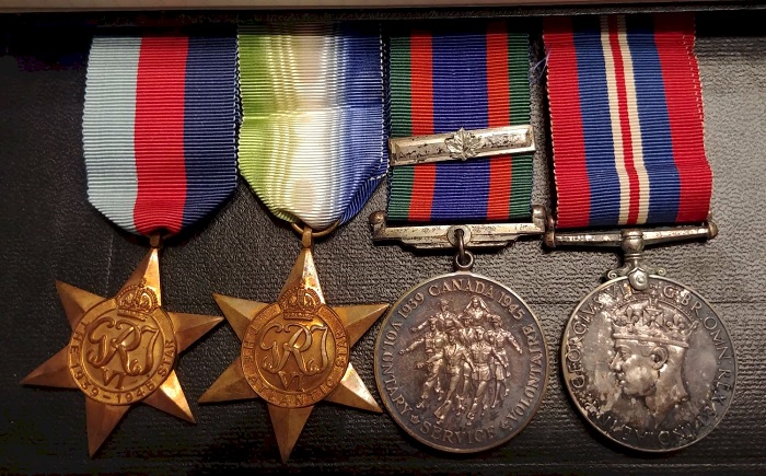 Lt Findlay's medals - The 1939-1945 Star, The Atlantic Star, The CVSM with Bar and The War Medal 1939-45