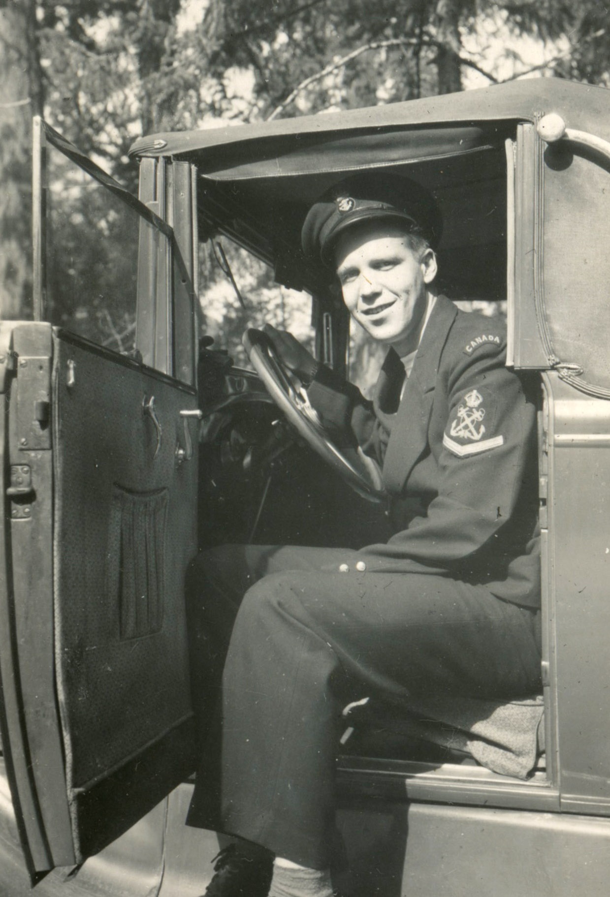 Ships served in: HMCS CHIPPAWA - Enlisted 20 May 1942 * Commenced Active Service 02 Aug 1942 as an Ordinary Seaman, RCNVR HMCS NADEN - Drafted to NADEN 27 Sep 1942 * Rated Acting Submarine Detector, RCNVR 23 Jan 1943 HMCS GIVENCHY - Drafted to GIVENCHY 27 Jan 1943 HMCS CORNWALLIS - Drafted to CORNWALLIS 26 Nov 1943 * Transferred. Rated Acting Anti-Submarine Artificer 4th Class, RCNVR 05 Feb 1944 HMCS STADACONA - Drafted to STADACONA 21 Apr 1944 HMCS SCOTIAN - Drafted to SCOTIAN 01 Jun 1944 HMCS STADACONA II - Drafted to STADACONA II 05 Jun 1944 HMCS BURRARD - Drafted to BURRARD 07 Jun 1944 HMCS BURRARD - Drafted to BURRARD for S.N.E.P. 18 Jul 1944 HMCS GIVENCHY - Drafted to GIVENCHY for S.N.E.P. 14 Sep 1944 HMCS GIVENCHY - Drafted to GIVENCHY as staff of Engineering Superintendent 28 Sep 1944 * Rated Anti-Submarine Artificer 4th Class, RCNVR 05 Feb 1945 HMCS NADEN - Drafted to NADEN 15 Se p1945 HMCS CHIPPAWA - Drafted to CHIPPAWA 19 Sep 1945 for Demobilization Leave * Demobilized 31 Oct 1945
