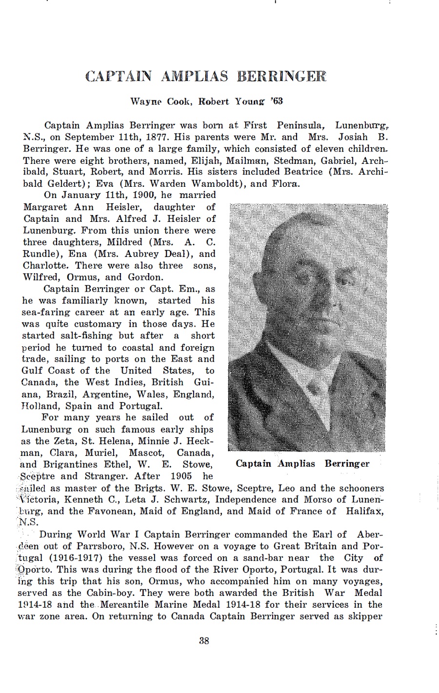 The above write-up on Amplias Berringer was from "The Seagull" - Lunenburg Academy Year Book 1963