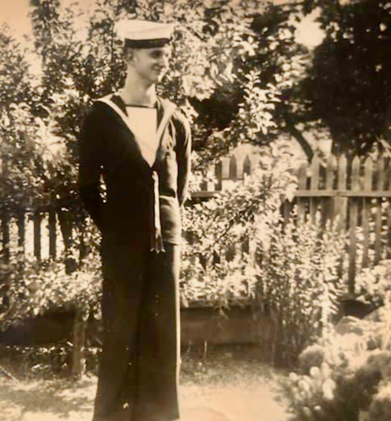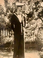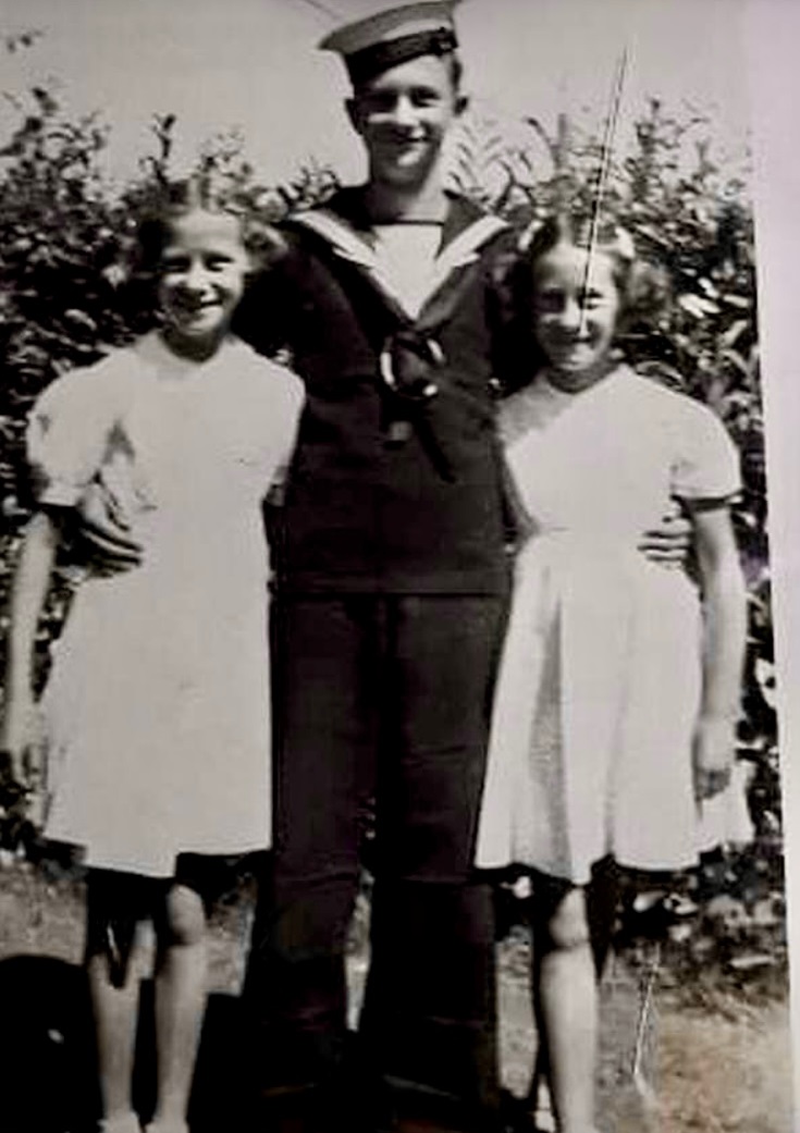 (EA01-EA02) Seaman Ed Abbott (EA03) Edward J. Abbott (front left) with shipmates in Bermuda (EA04) Ed Abbott with his twin sisters