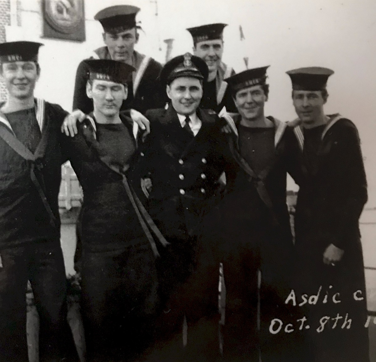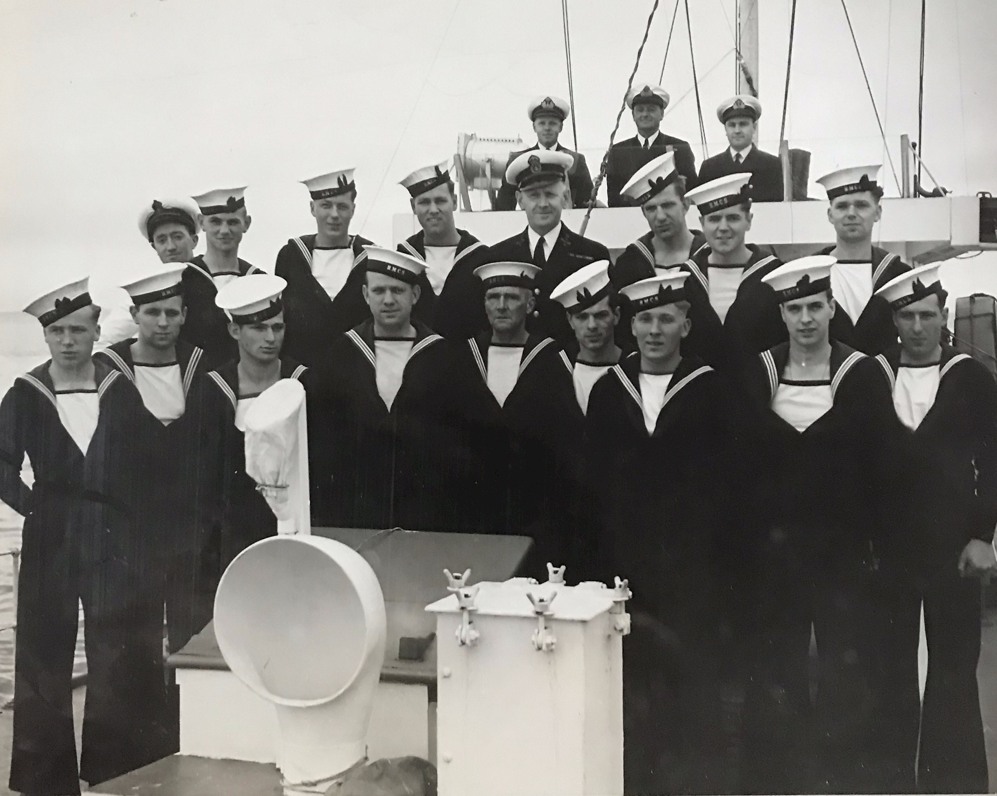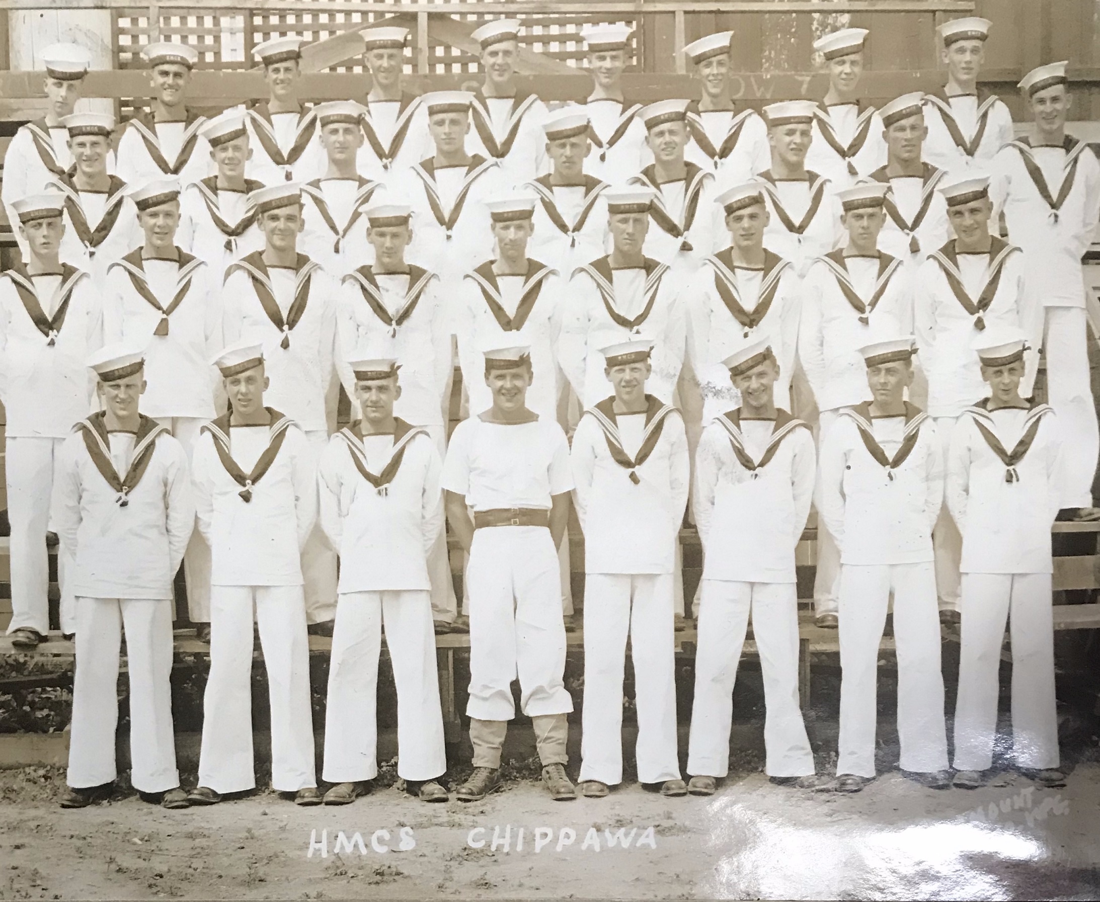 (HC01) - New Entry Training at HMCS CHIPPAWA - Harry Campbell 2nd row 4th from left (HC02) Crew of unidentified Fairmile Motor Launch (HC03-HC04) Royal Navy Destroyer HMS SWIFT sinking after striking a mine off Normandy (Sword Beach) on 24 Jun 1944. She was at anchor and struck the mine as she swung on her mooring