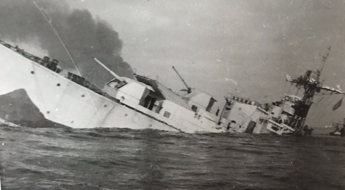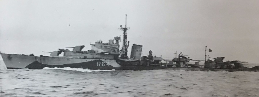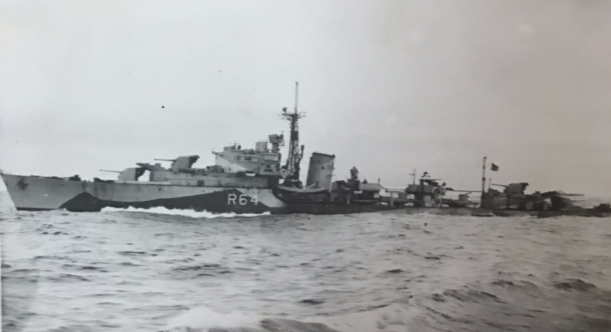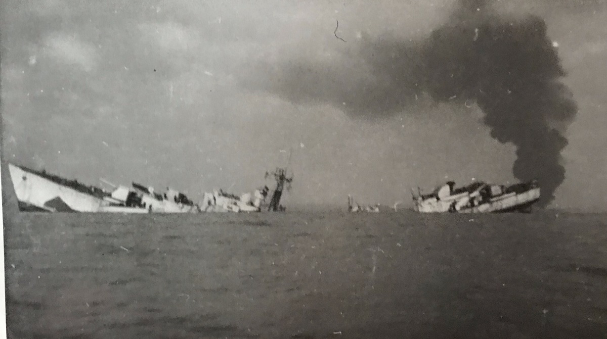 (HC01) - New Entry Training at HMCS CHIPPAWA - Harry Campbell 2nd row 4th from left (HC02) Crew of unidentified Fairmile Motor Launch (HC03-HC04) Royal Navy Destroyer HMS SWIFT sinking after striking a mine off Normandy (Sword Beach) on 24 Jun 1944. She was at anchor and struck the mine as she swung on her mooring